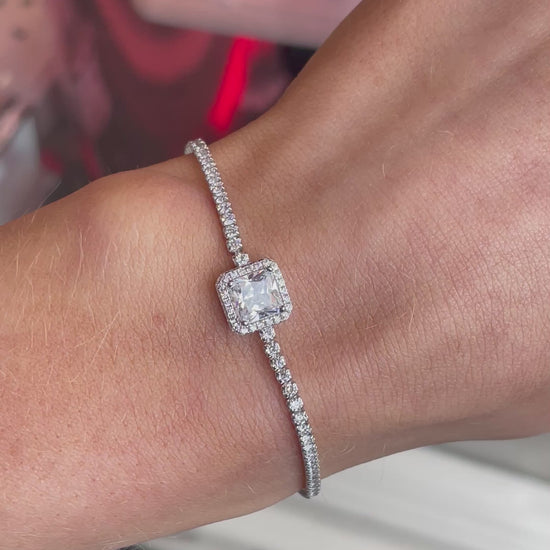 Silver CZ Centrepiece Tennis Bracelet | 925 Silver Rhodium Plated