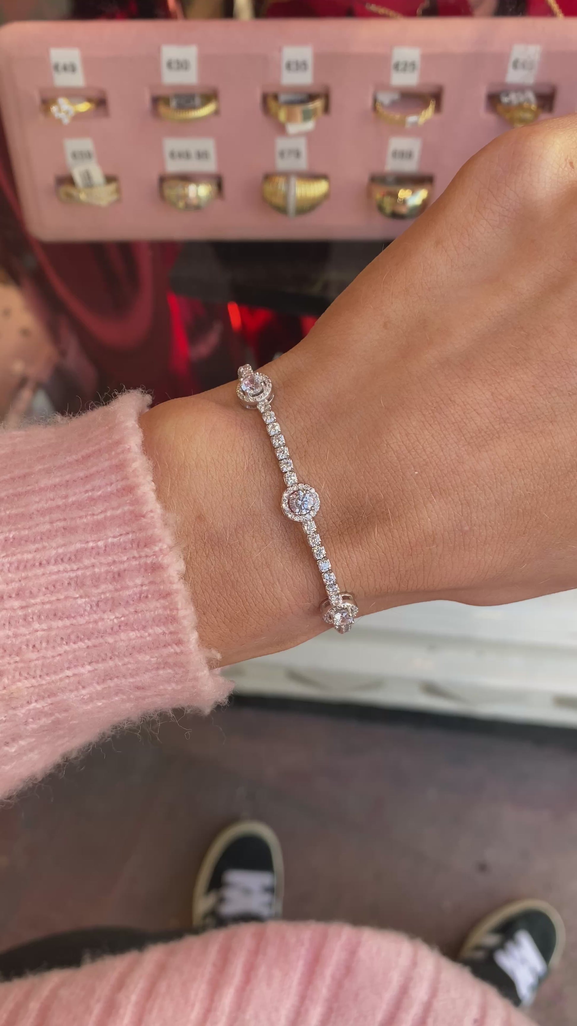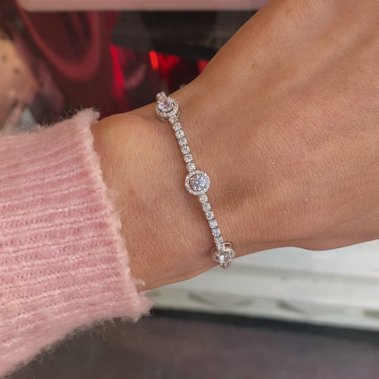 Silver CZ Halo Station Bracelet | 17cm | 925 Silver Rhodium Plated