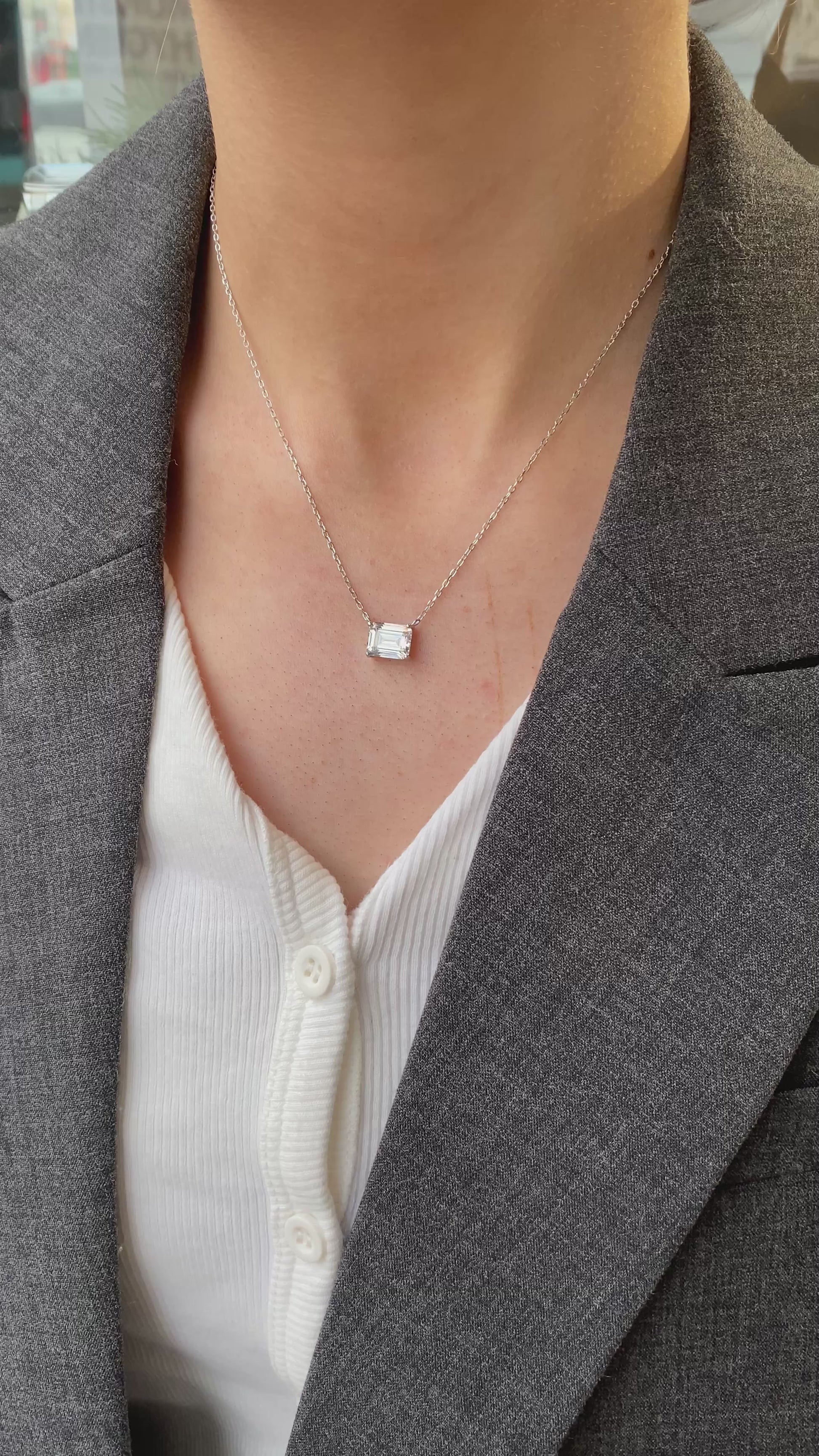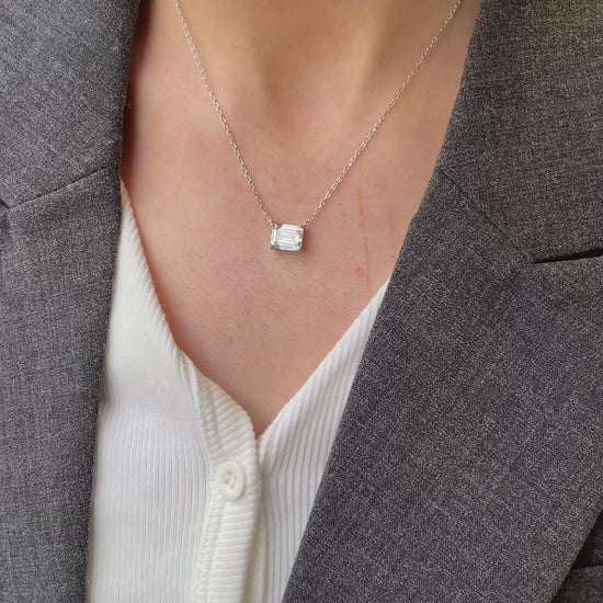 Silver Emerald Cut CZ Necklace