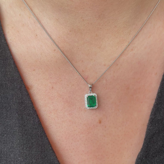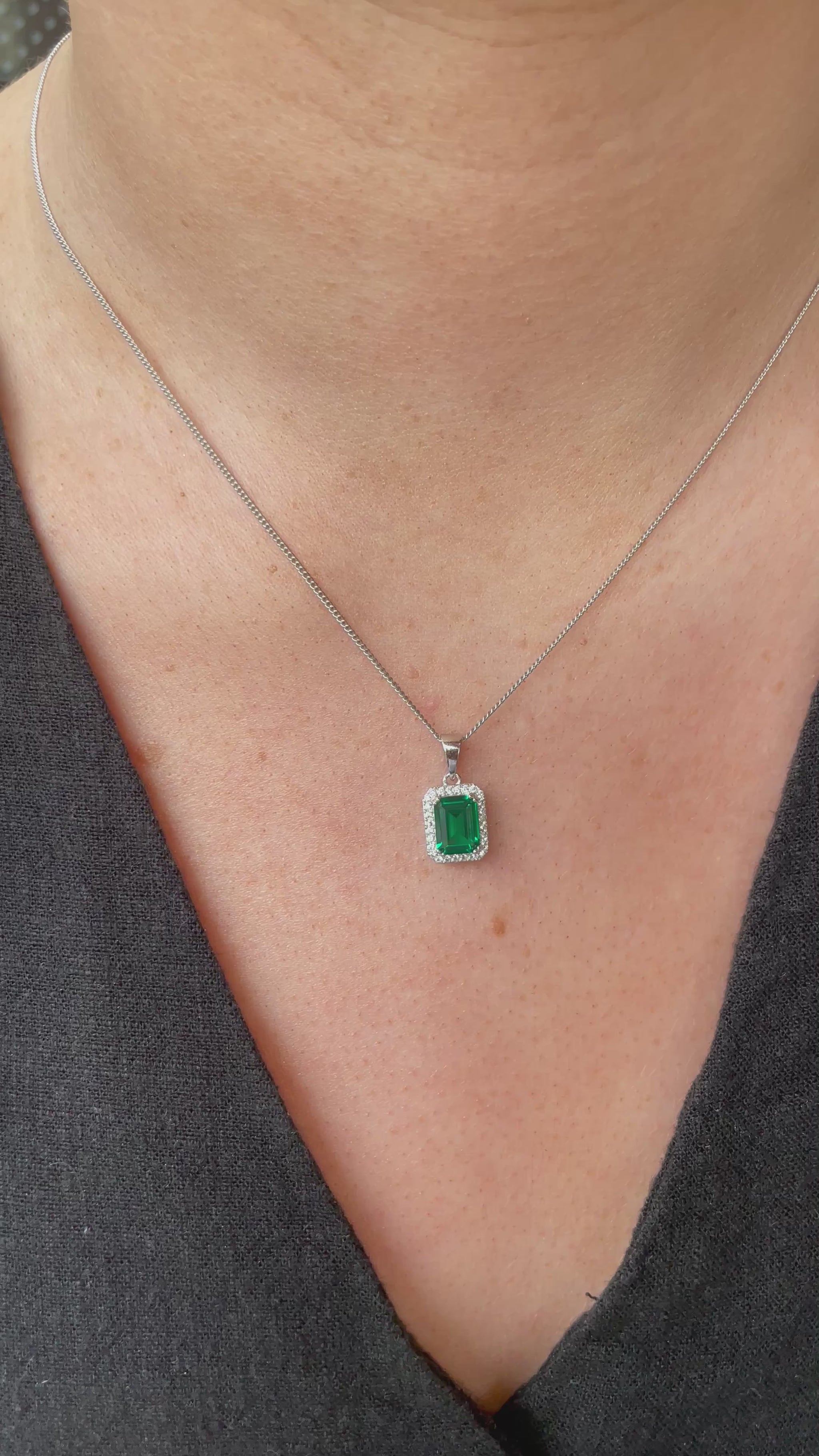 Silver Emerald Halo CZ Necklace | Emerald Green