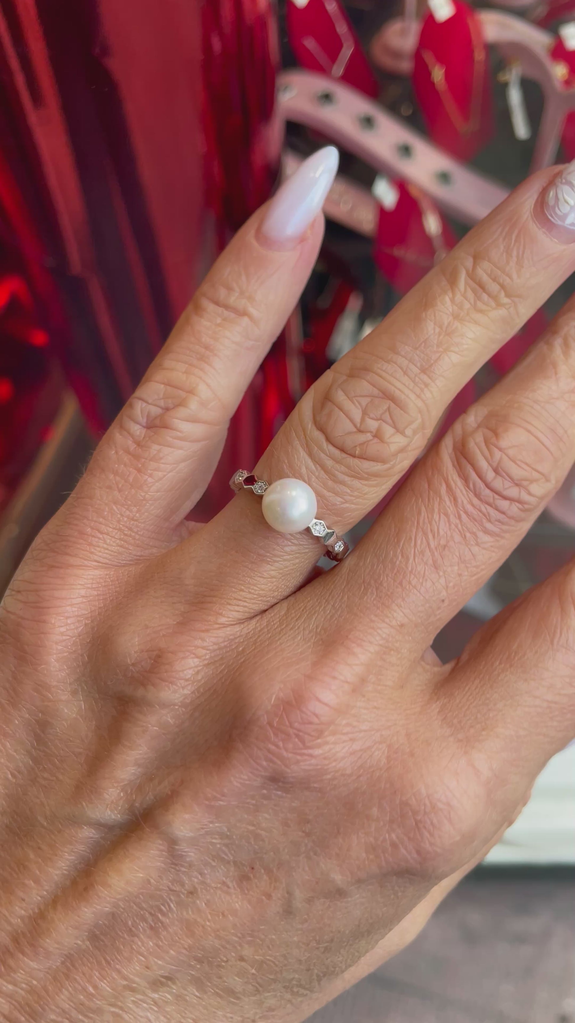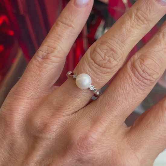 Silver Freshwater Pearl & CZ Ring| 8mm