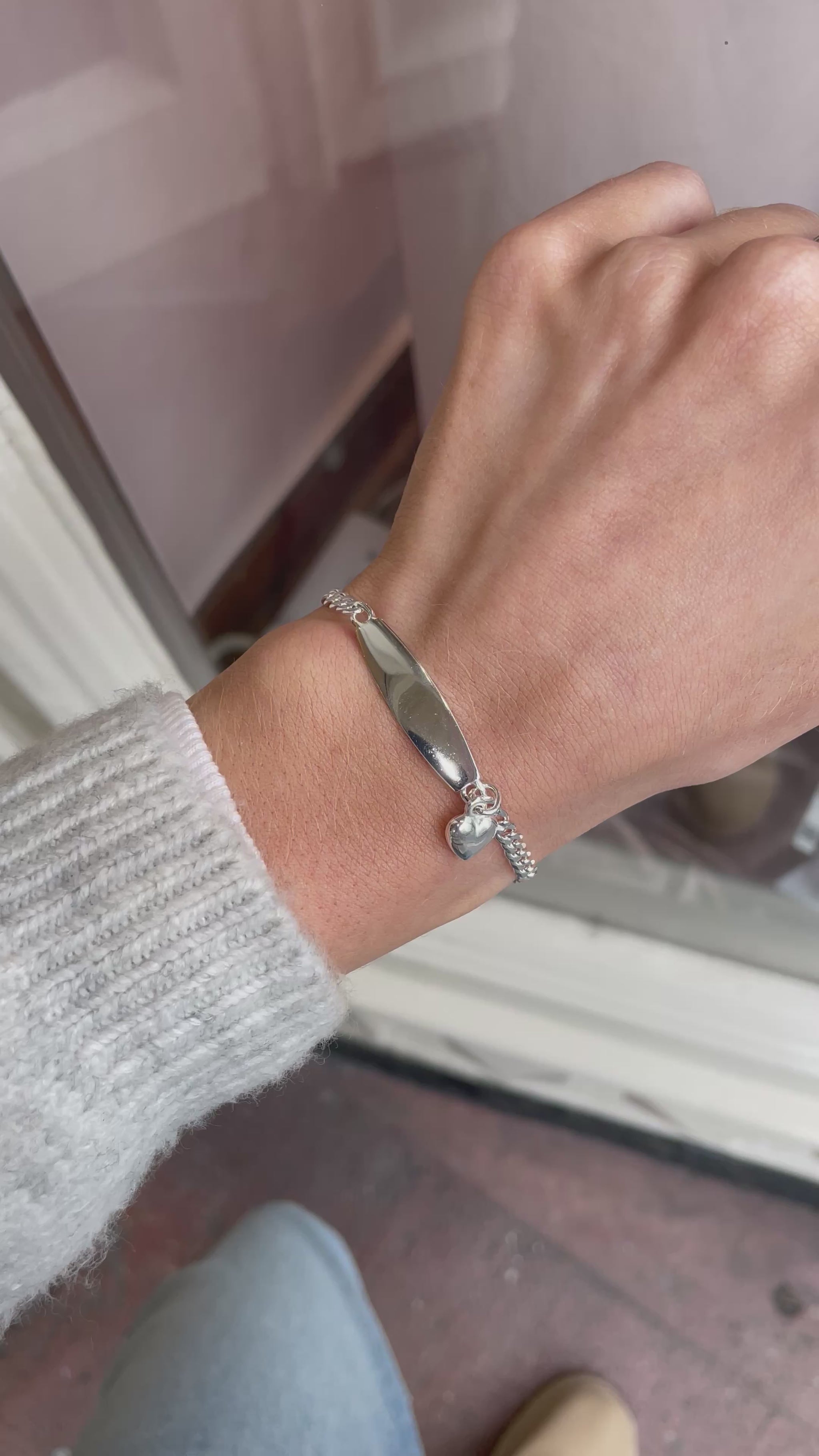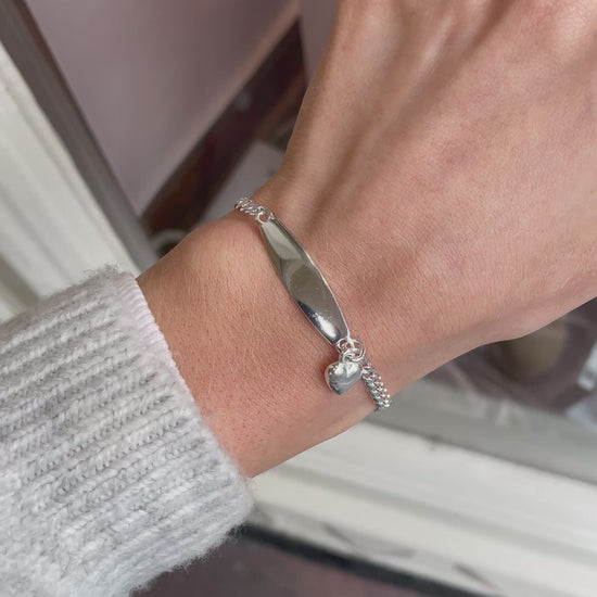Silver Heart Charm Identity Bracelet | 16+2cm