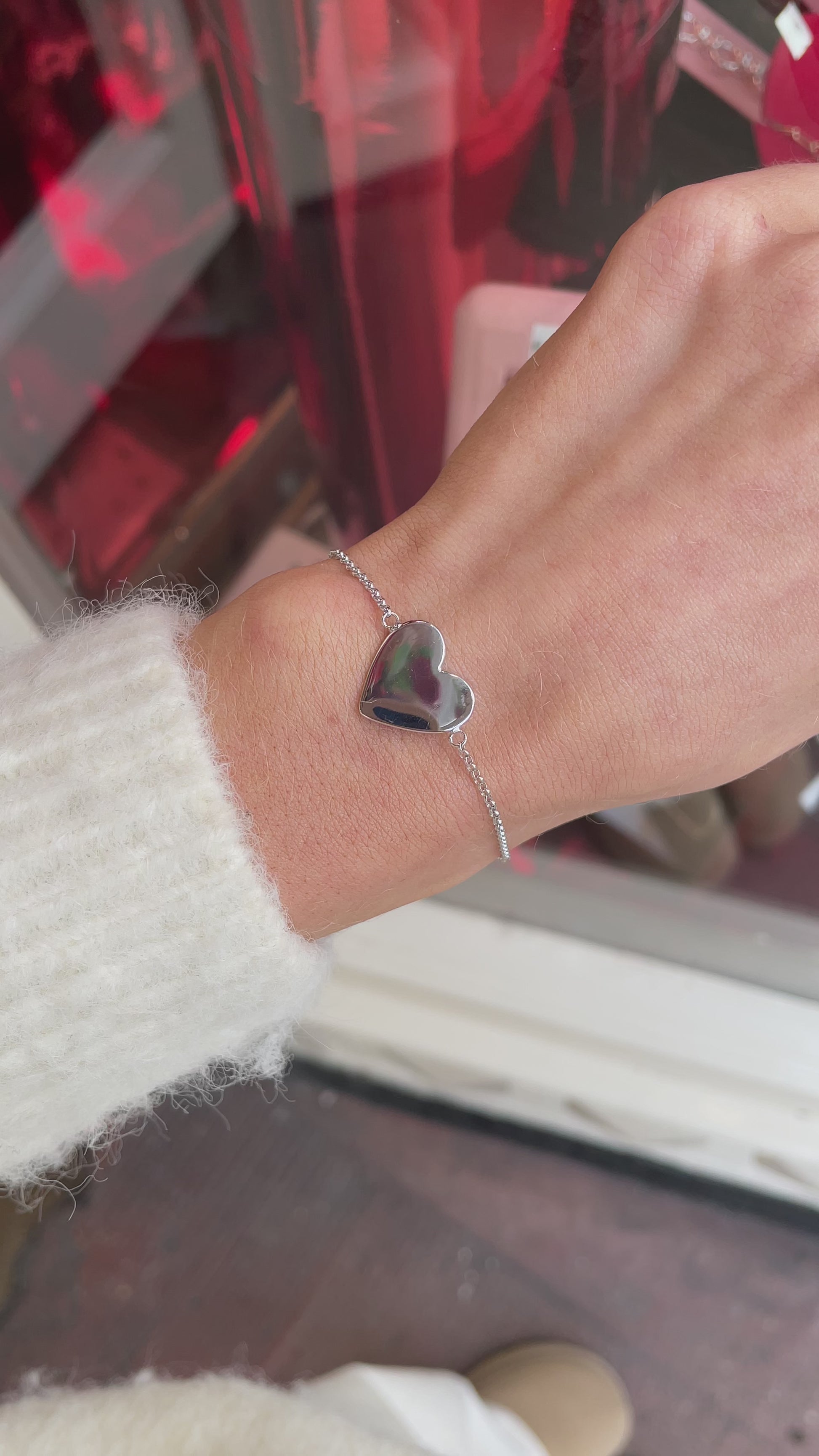 Silver Heart Disc Bracelet with CZ | 925 Silver Rhodium Plated
