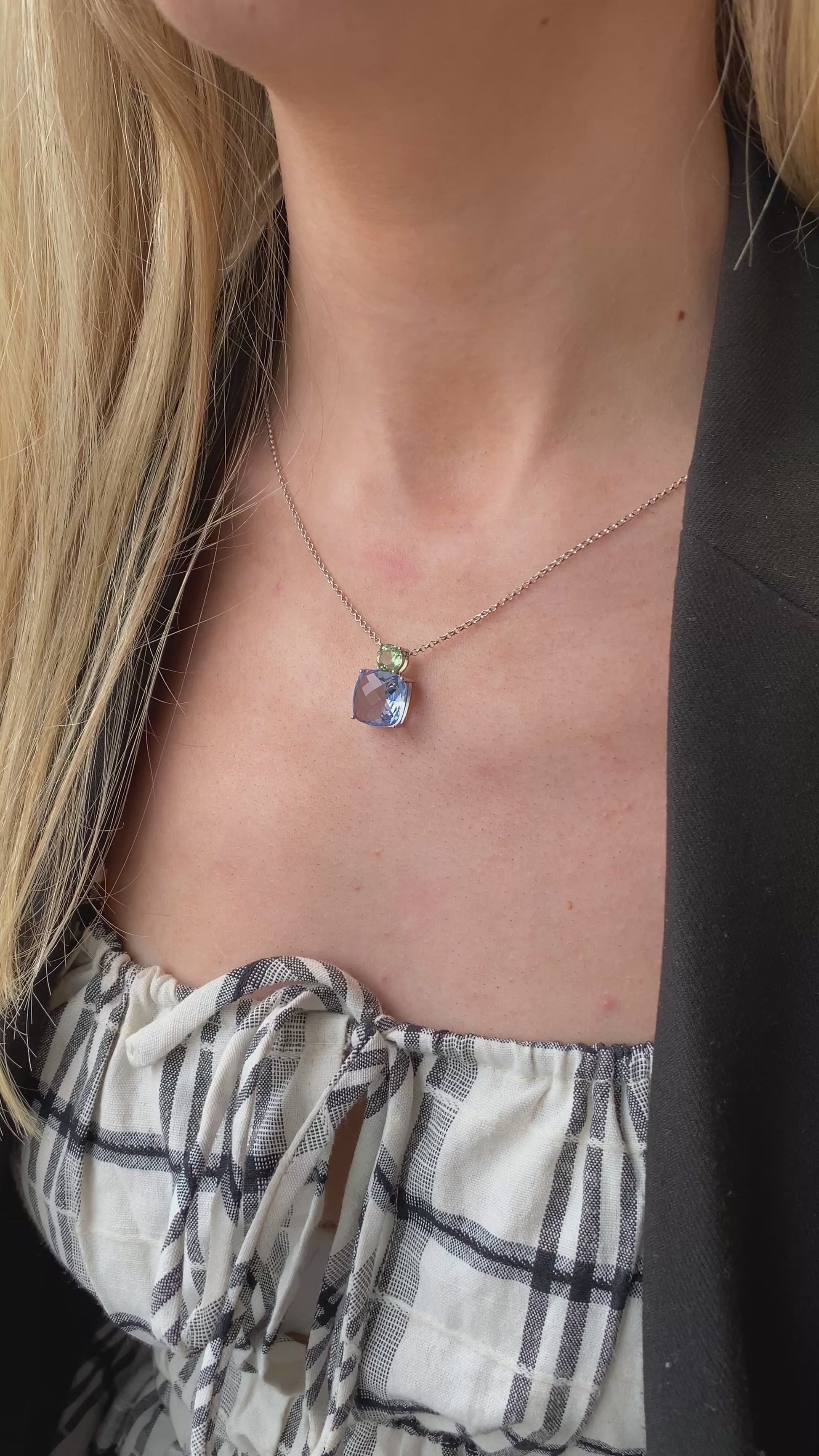 Silver Hydro Aqua & Light Green Hydro Necklace | 42+5+5cm