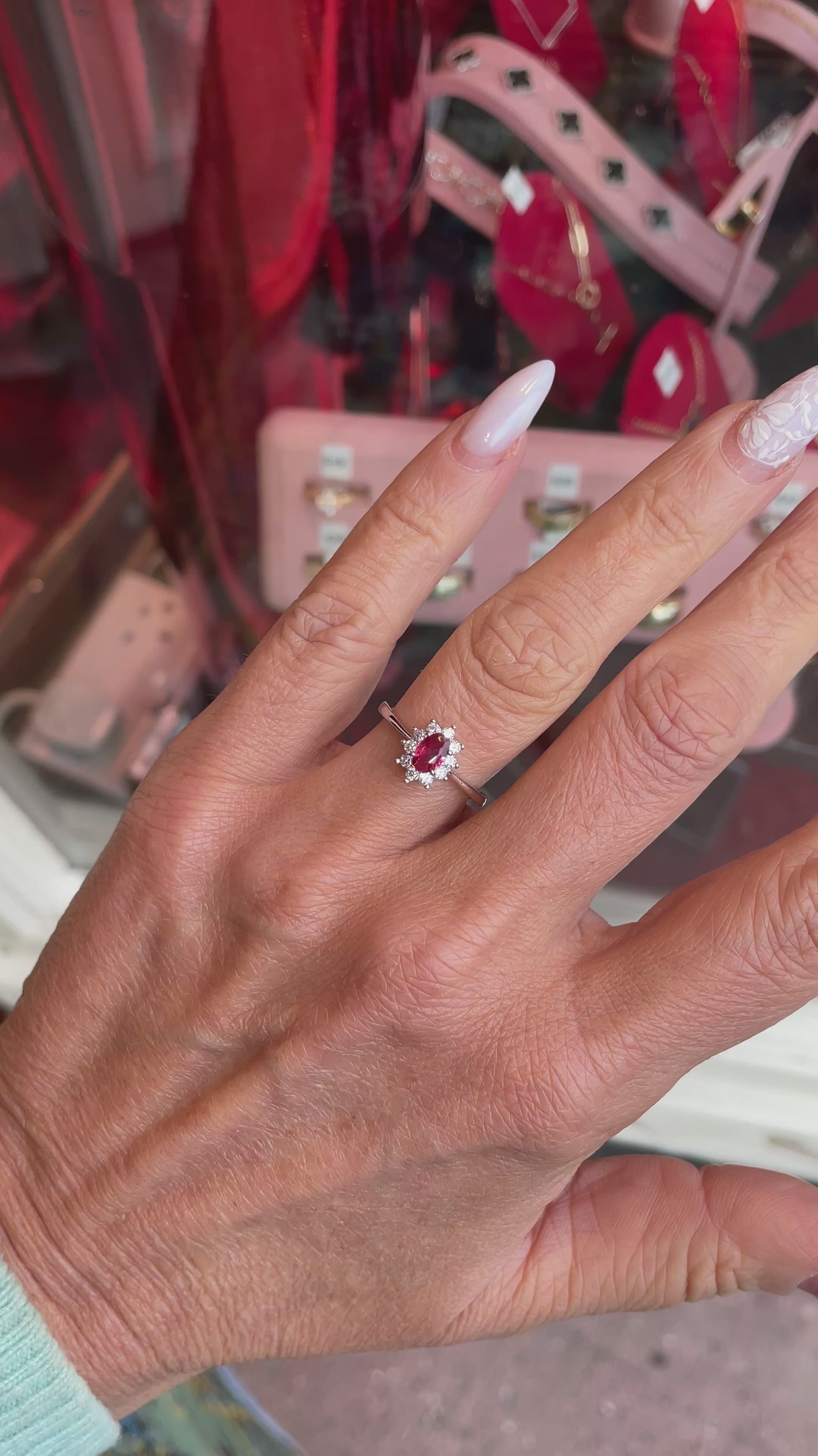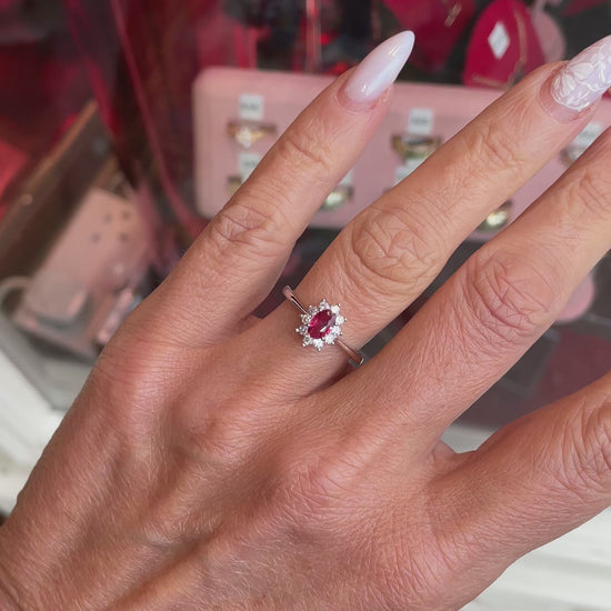 Silver Oval CZ Diana Ring | Ruby Red