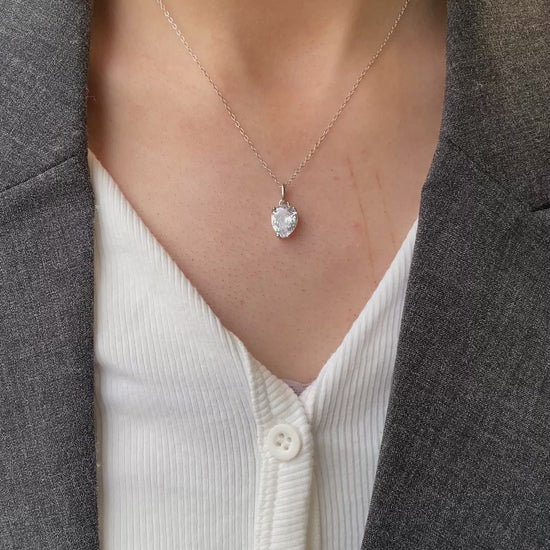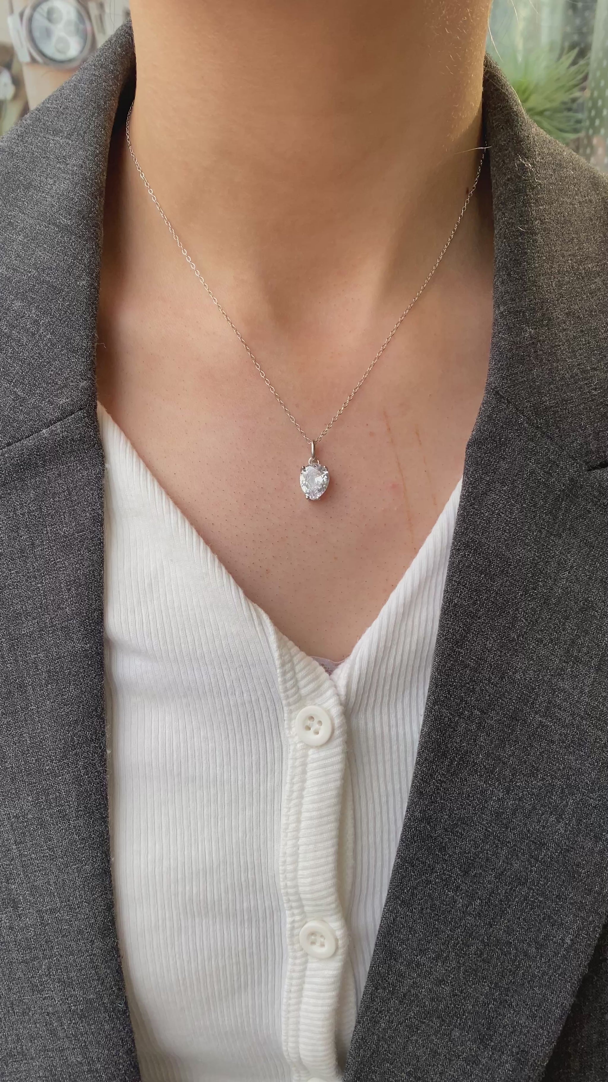 Silver Pear CZ Necklace | 925 Silver | 7x10mm, 40+5cm