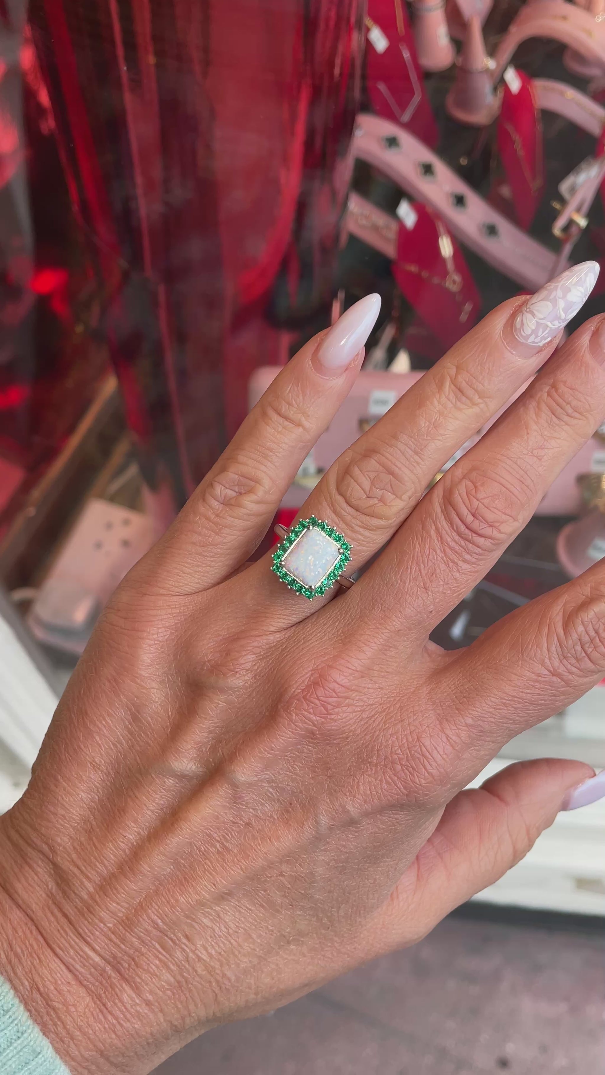 Silver Radiant Cluster Ring | Opalique & Emerald Green | 925 Silver