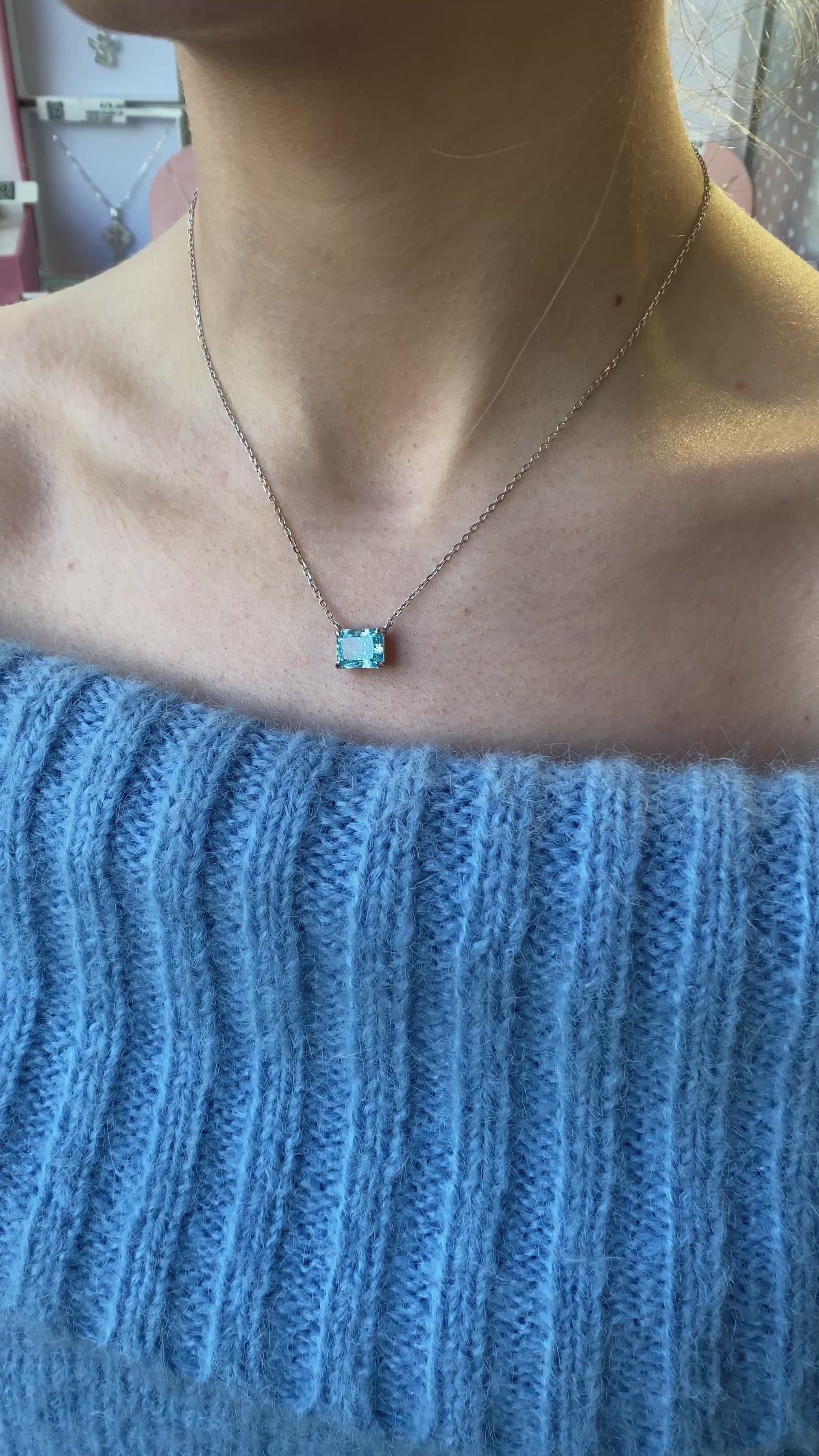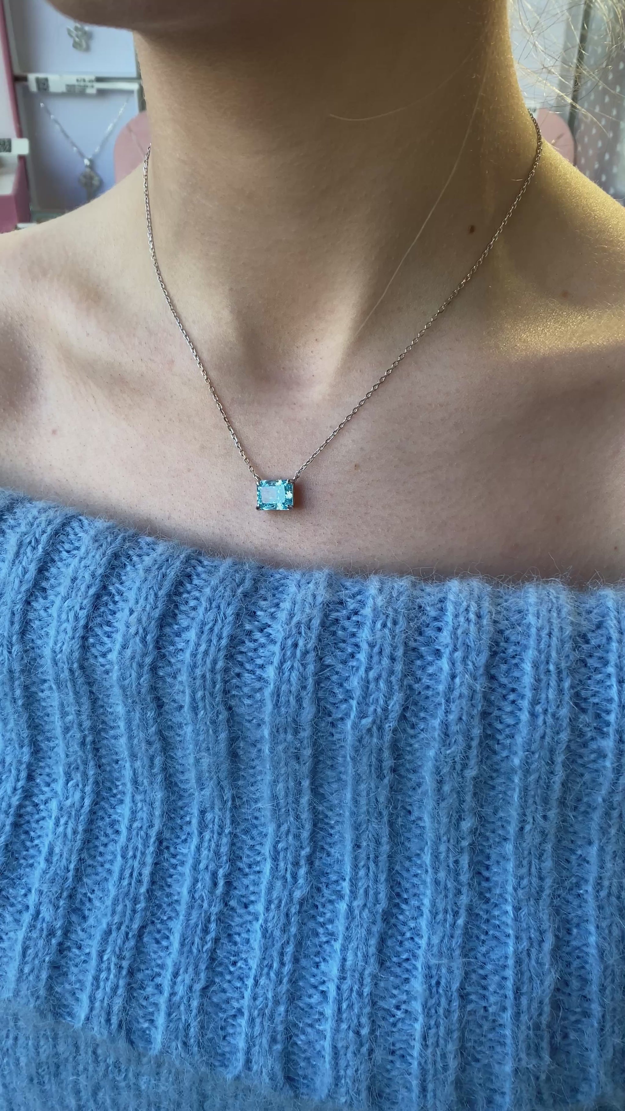 Silver Side To Side CZ Necklace | Ice Blue 40+5cm