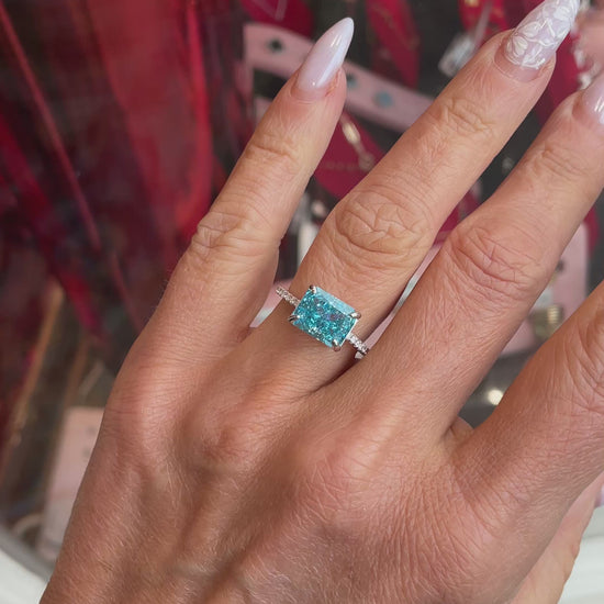 Silver Side to Side Solitaire Ring | Vivid Blue