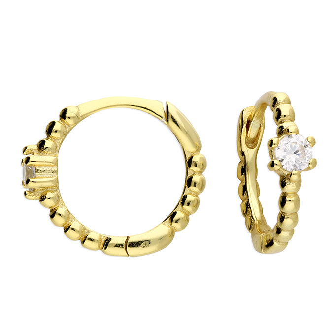 Sunshine Fine CZ Set Beaded Huggie Hoop Earrings | 10mm