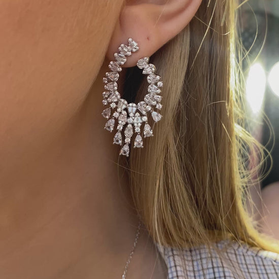 Silver Peacock Tail CZ Drop Earrings