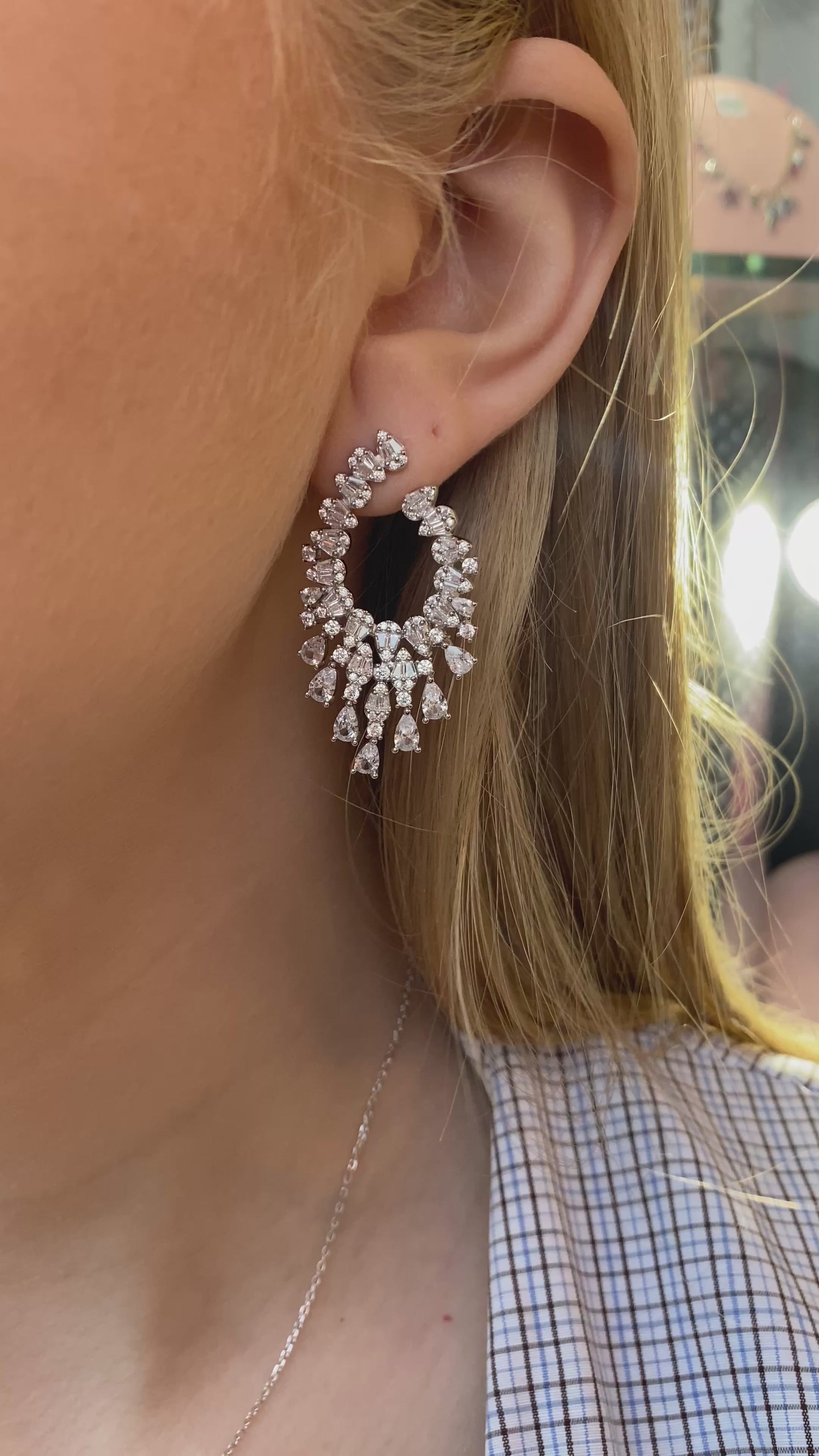 Silver Peacock Tail CZ Drop Earrings | 925 Silver Rhodium Plated