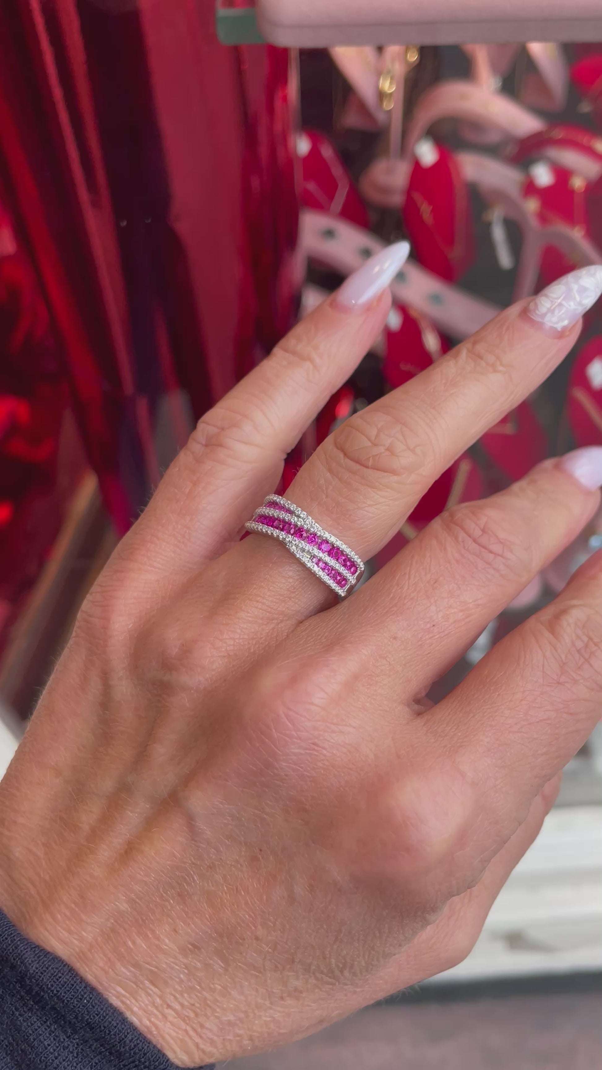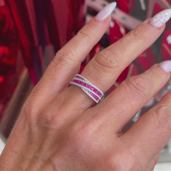 Silver CZ Crossover Band Ring | Ruby Red