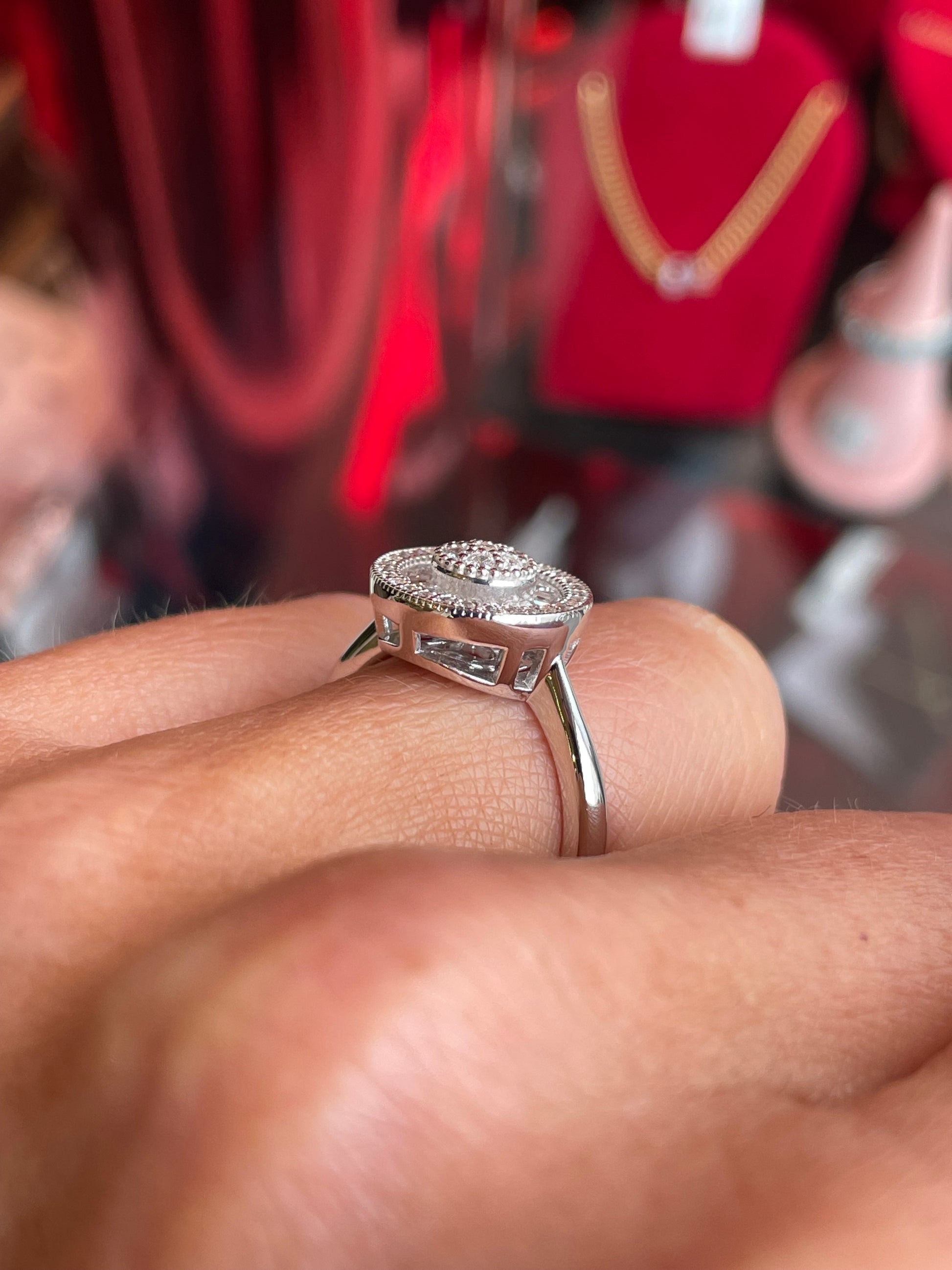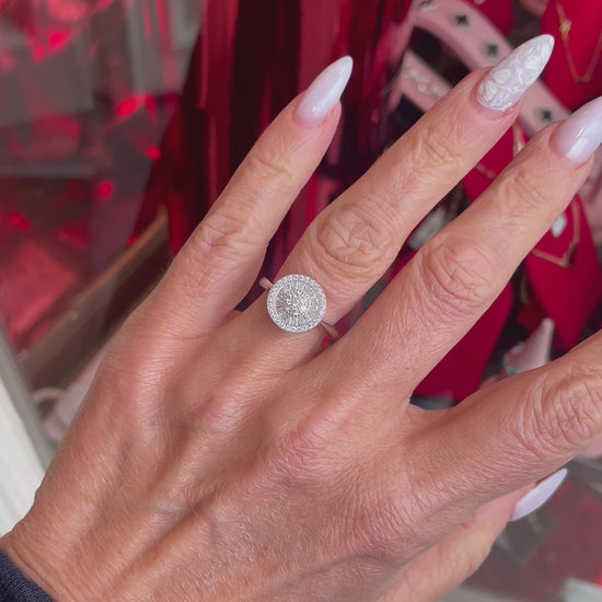 Silver CZ Halo Cluster Ring | Baguettes | 925 Silver