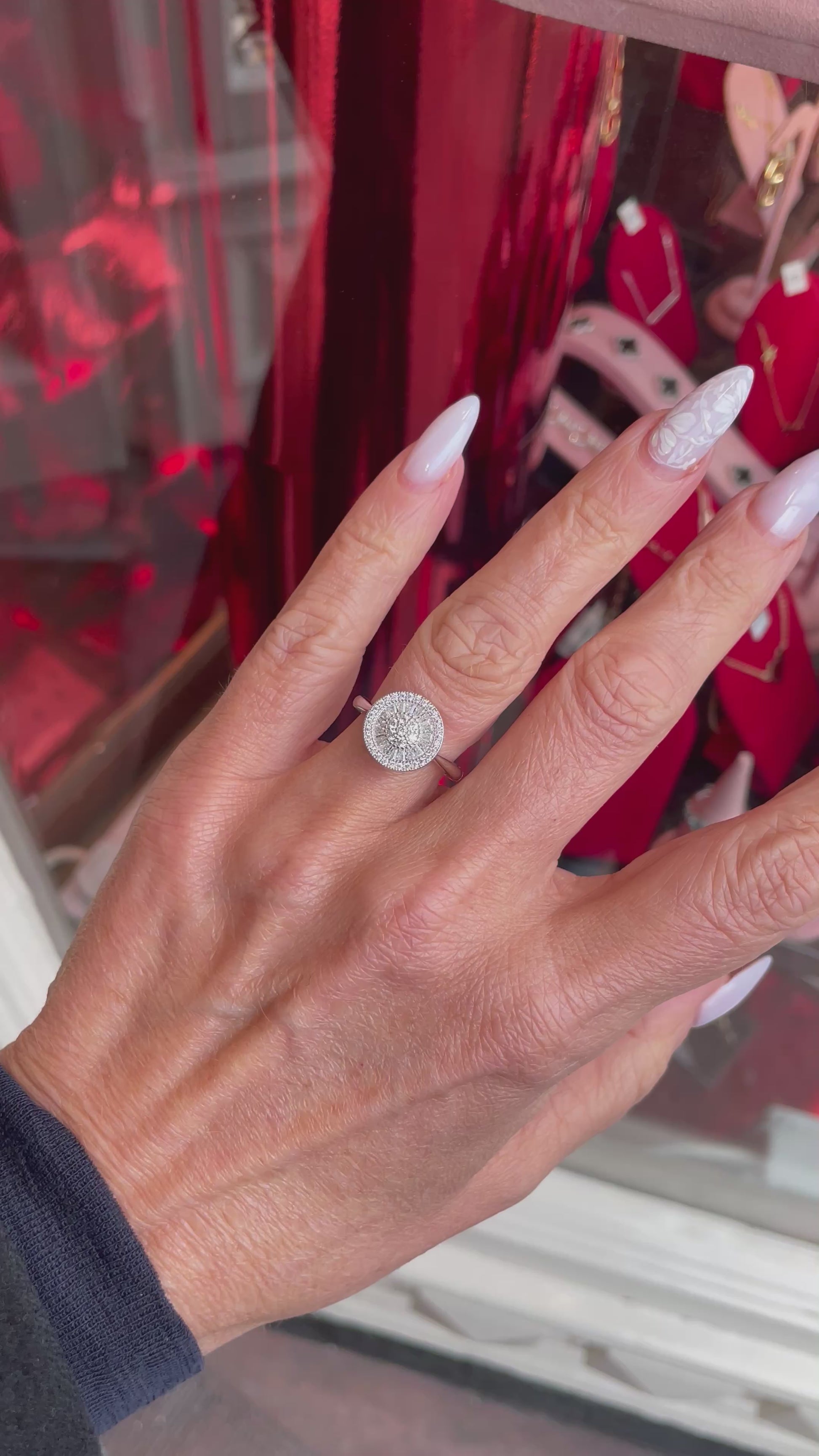 Silver CZ Halo Cluster Ring | Baguettes