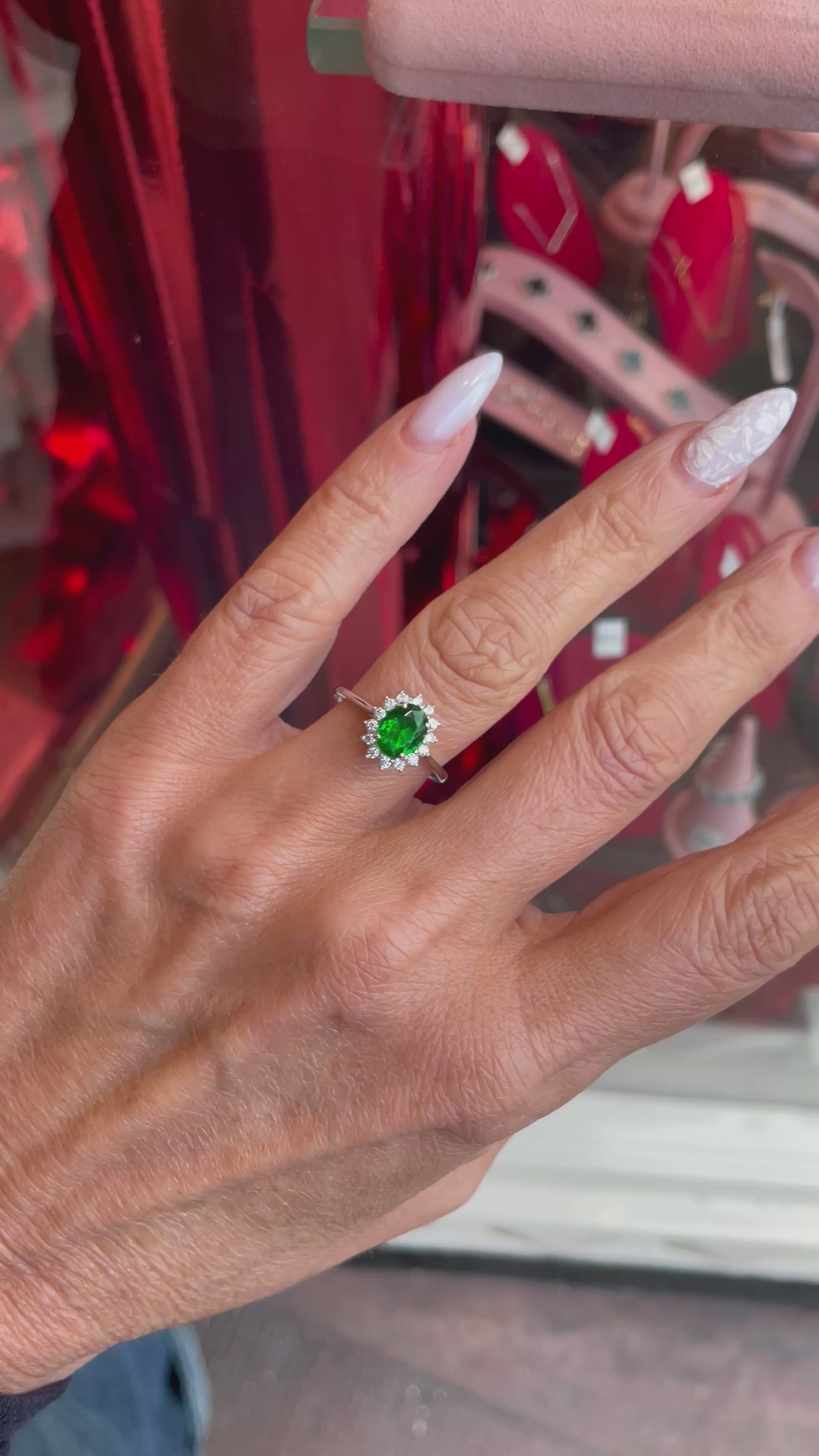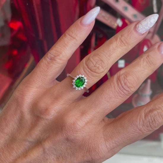 Silver Oval CZ Diana Ring | Emerald Green
