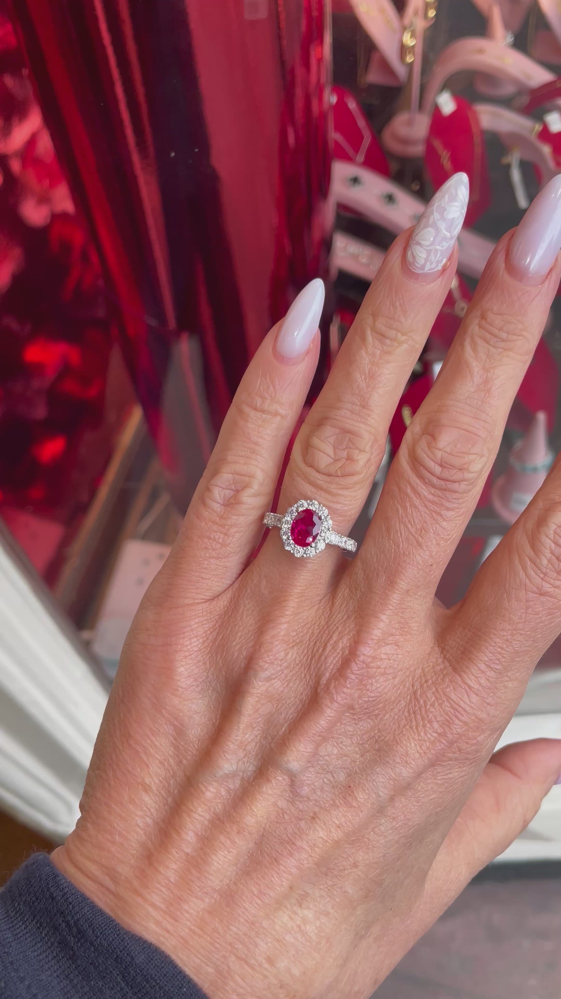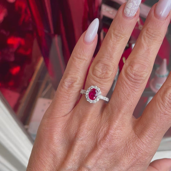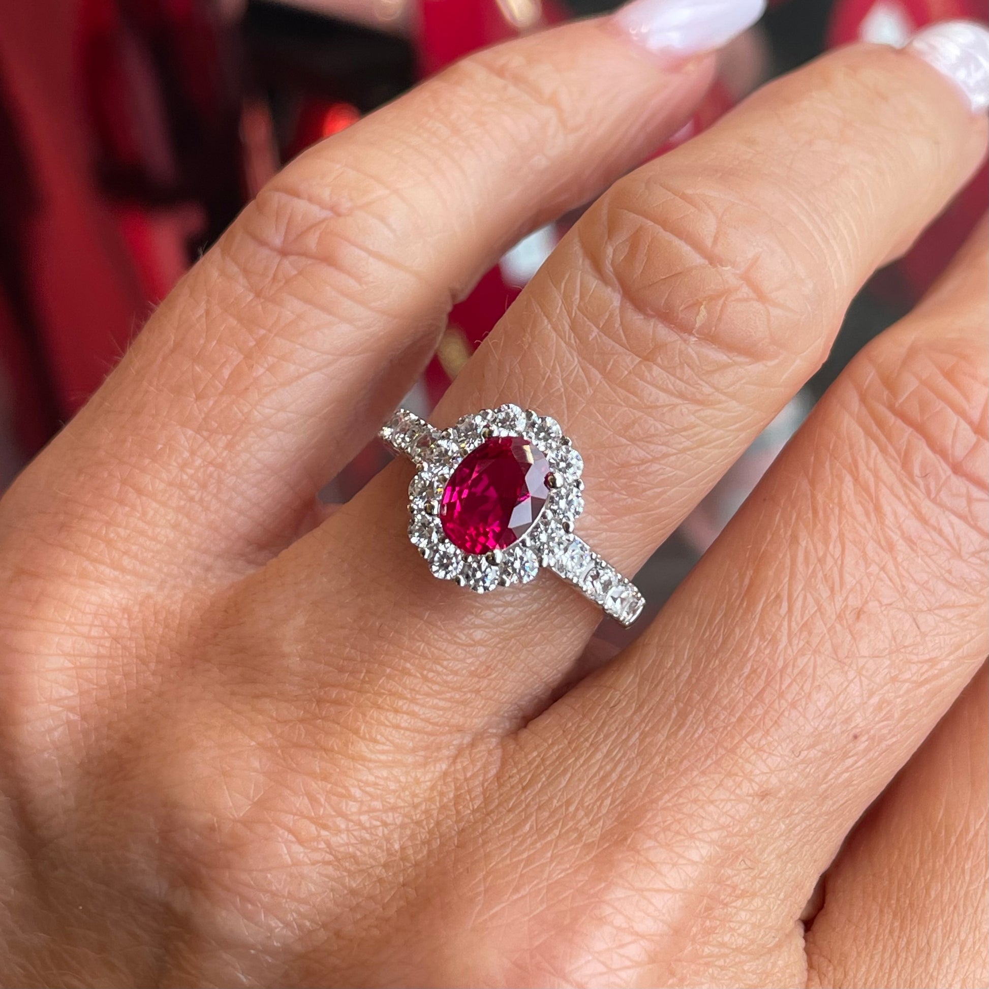 Silver Oval Diana Cluster Ring with Shoulders | Ruby Red