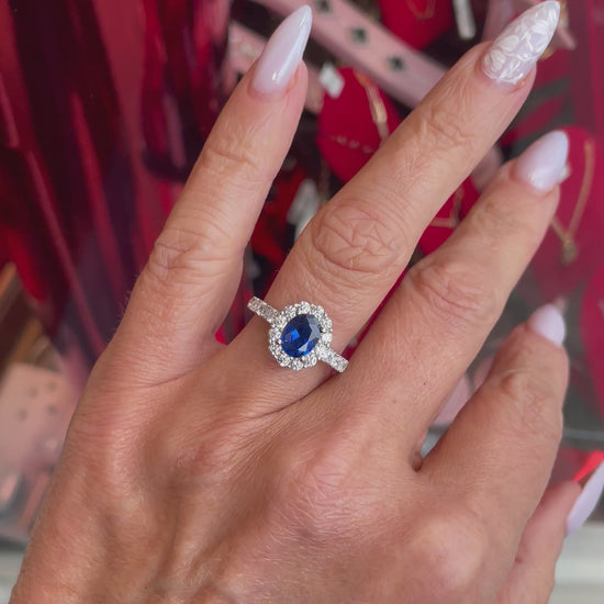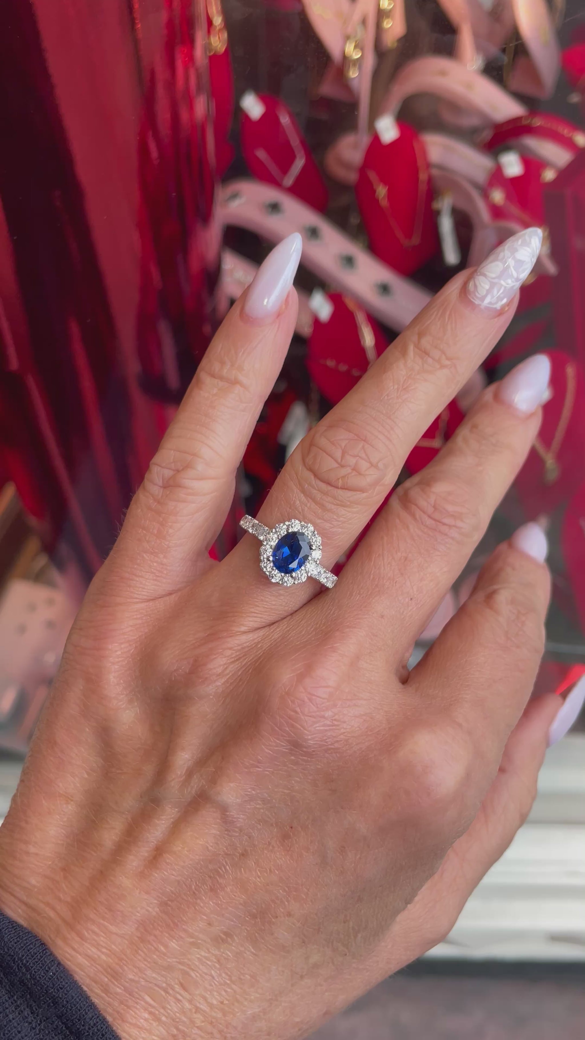Silver Oval Diana Cluster Ring with Shoulders | Sapphire Blue