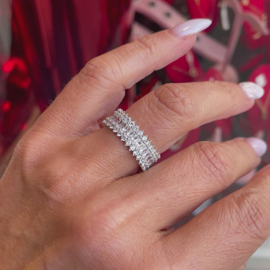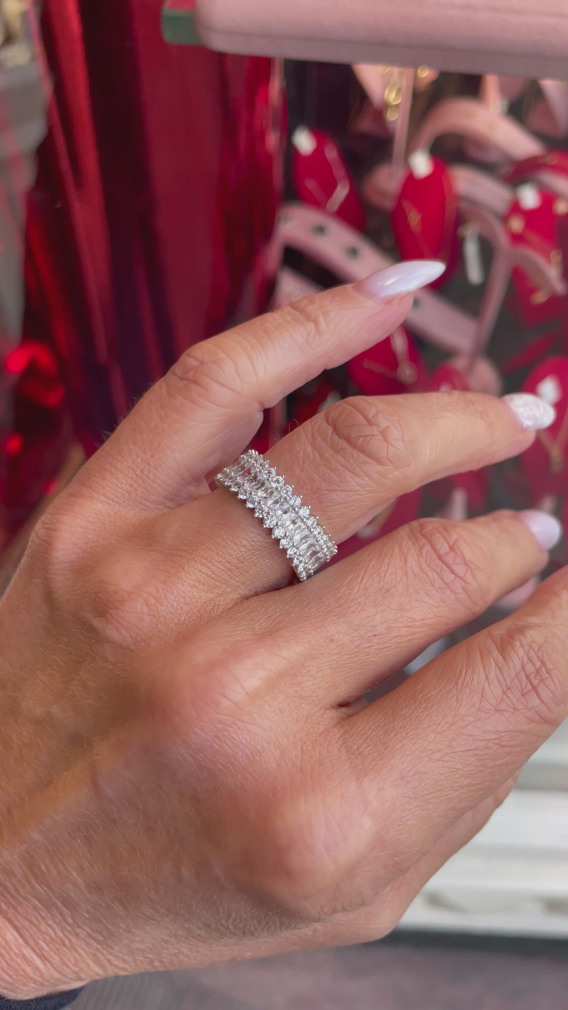Silver Spikey CZ Band Ring | Baguettes | 925 Silver