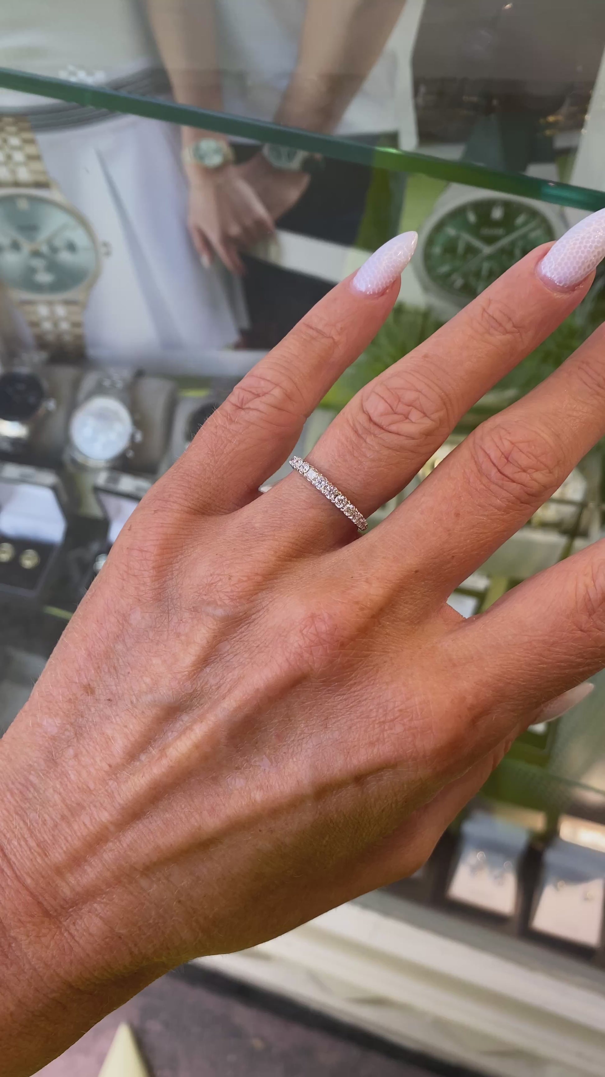 18ct gold diamond eternity ring set with nineteen round brilliant cut diamonds, thee is a slight graduation in the diamond sizes. 0.53ct in total. G colour. VS clarity.