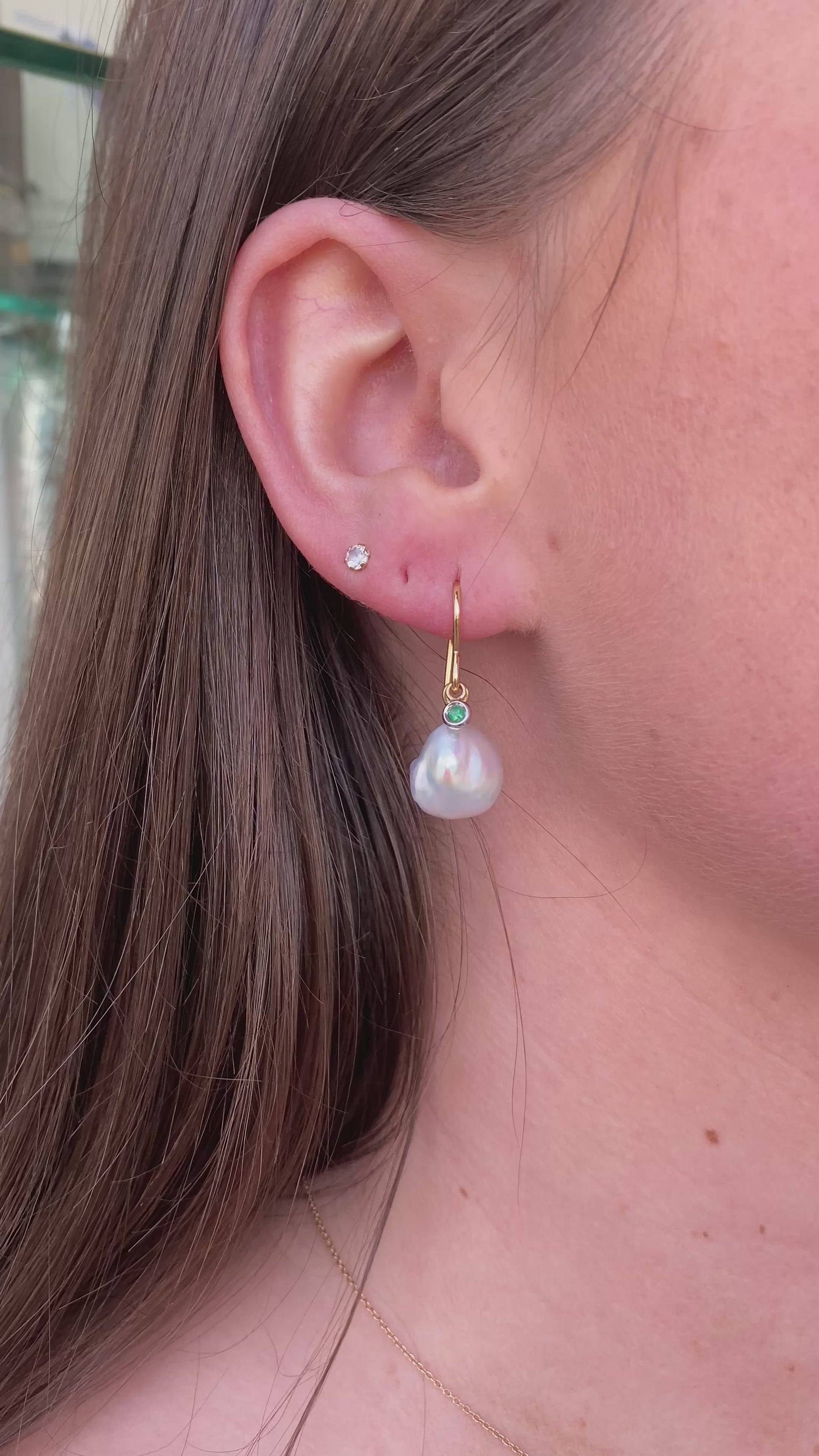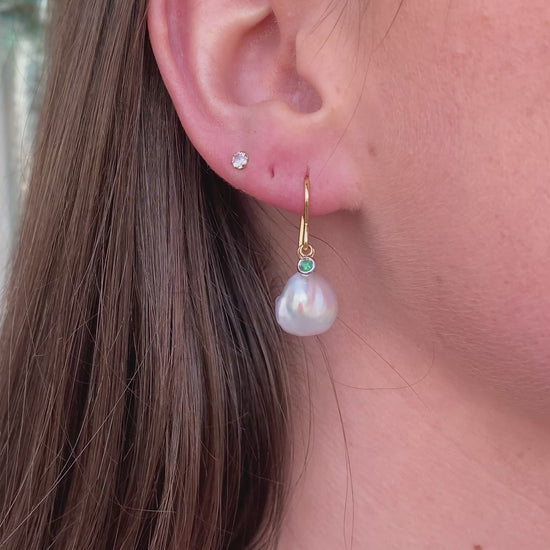 18ct Gold Keshi Pearl & Emerald Drop Earrings