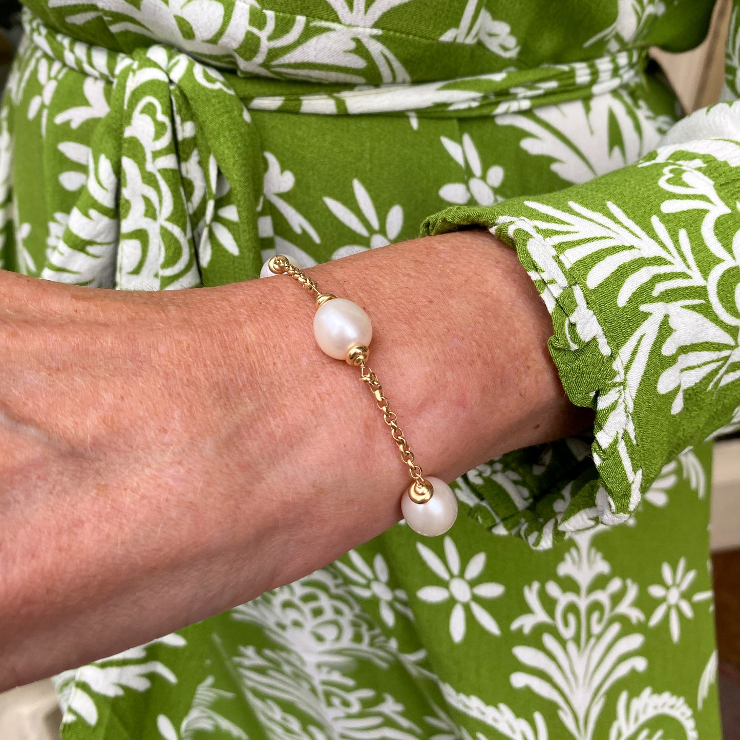 18ct Gold Cultured Freshwater Pearl and Chain Bracelet