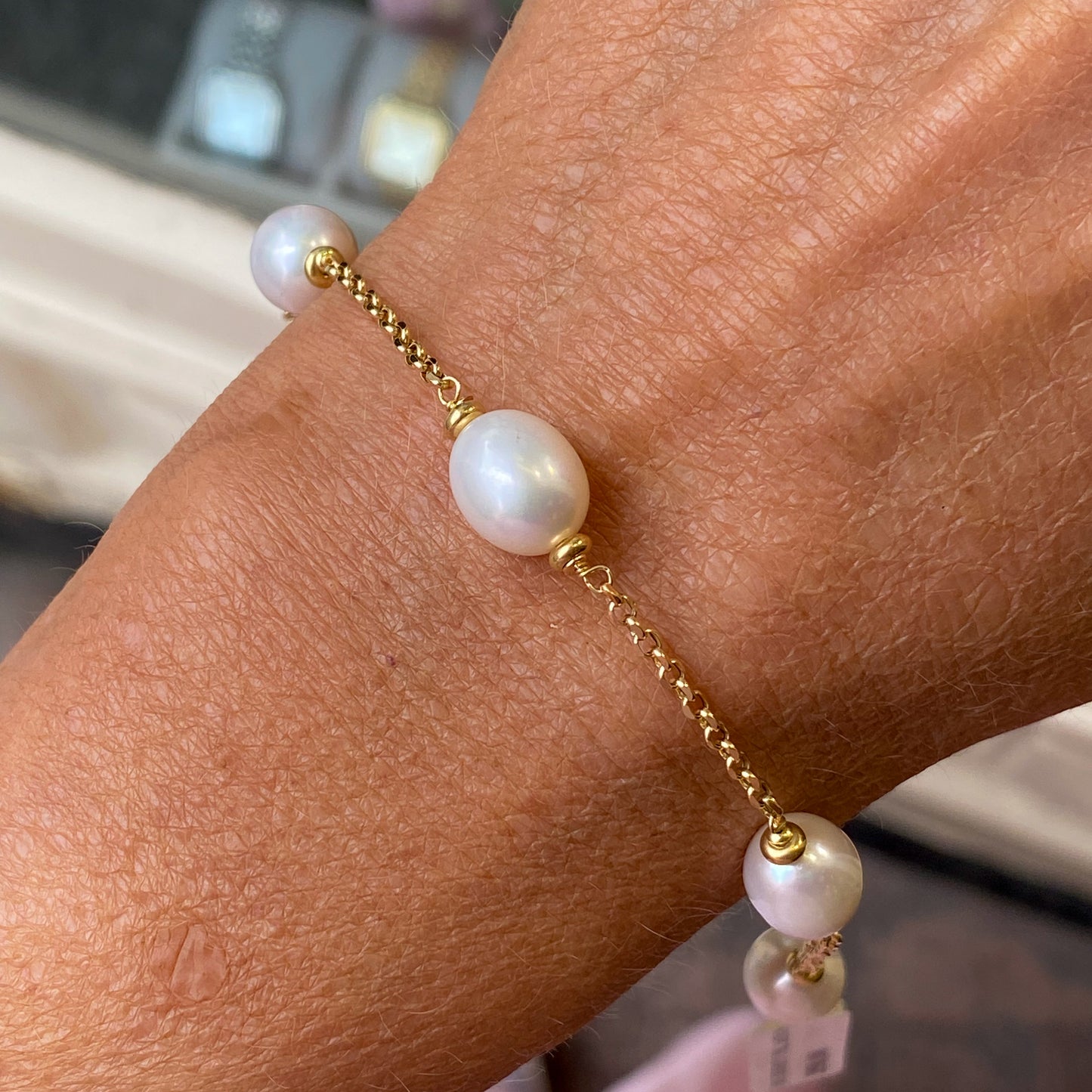18ct Gold Cultured Freshwater Pearl and Chain Bracelet