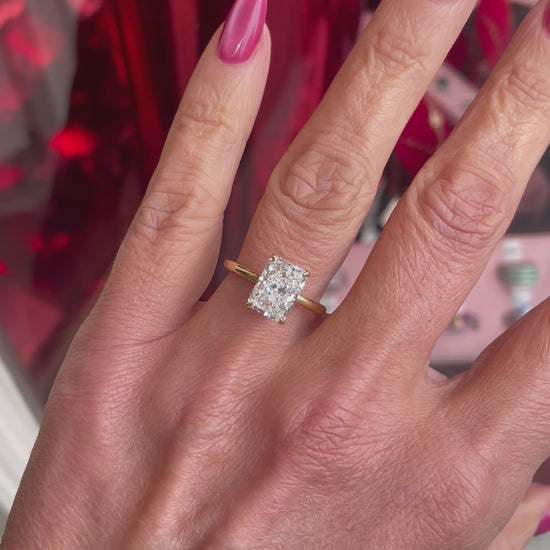 18ct Gold Radiant Solitaire Engagement Ring with hidden halo | 3.01ct Certificated