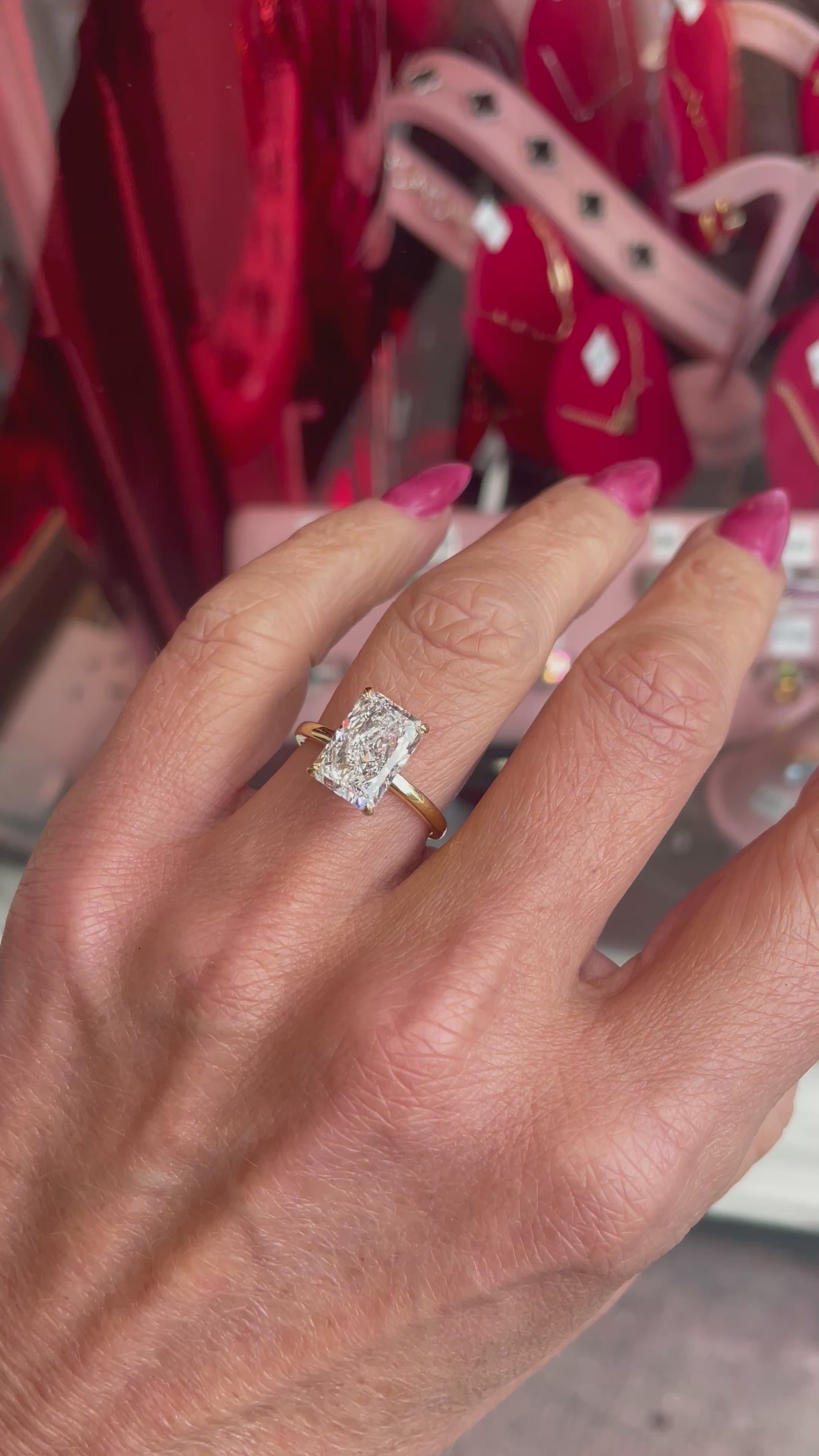 18ct Gold Radiant Solitaire Engagement Ring with hidden halo | 4.00ct Certificated