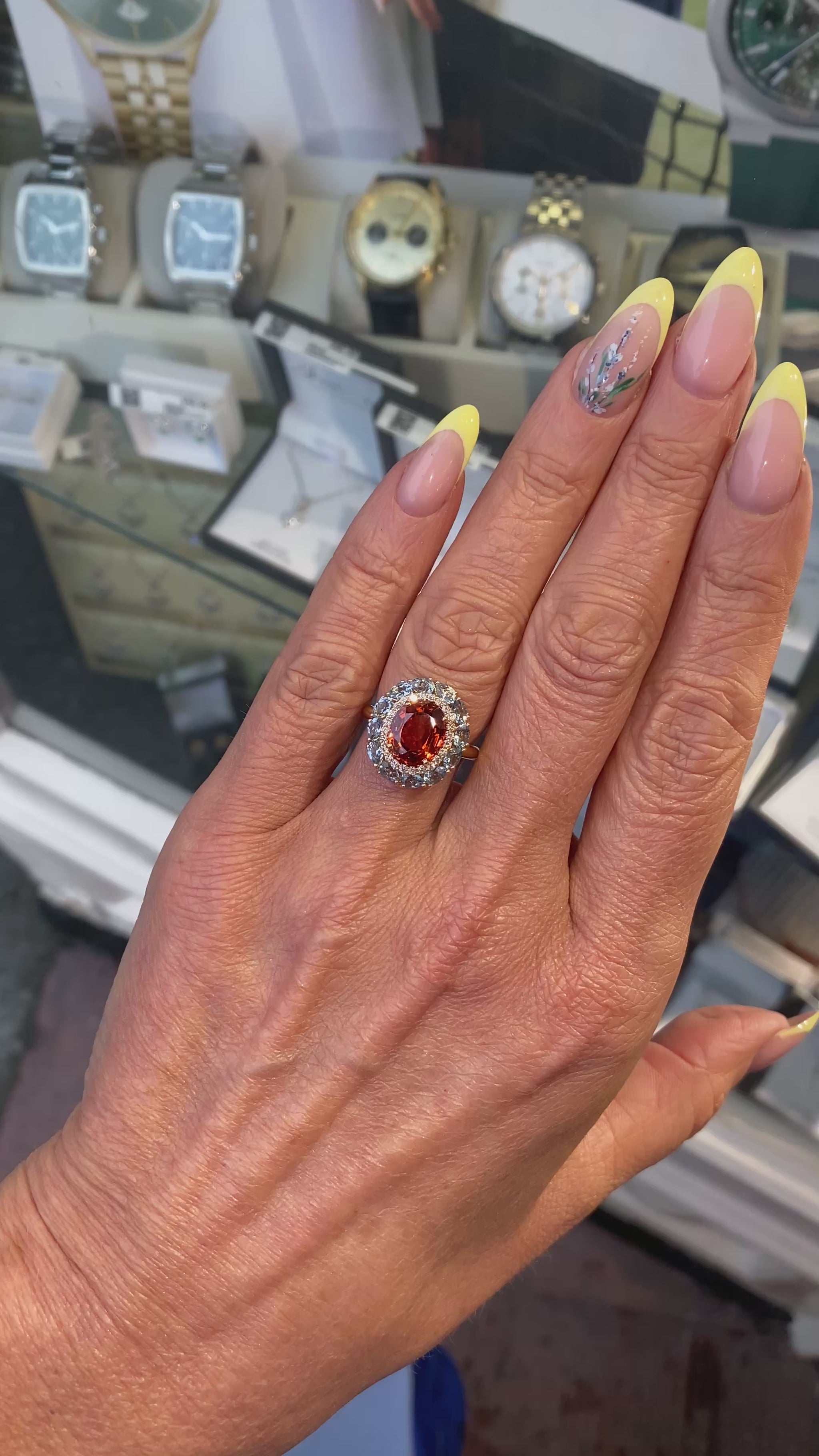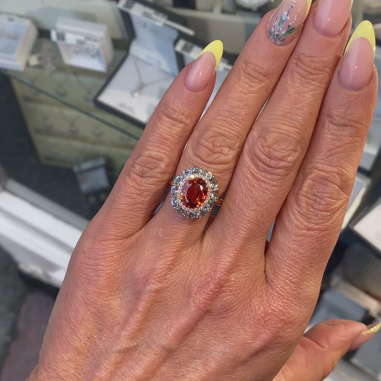 18ct Gold Spessartite Garnet, Aquamarine & Diamond Ring
