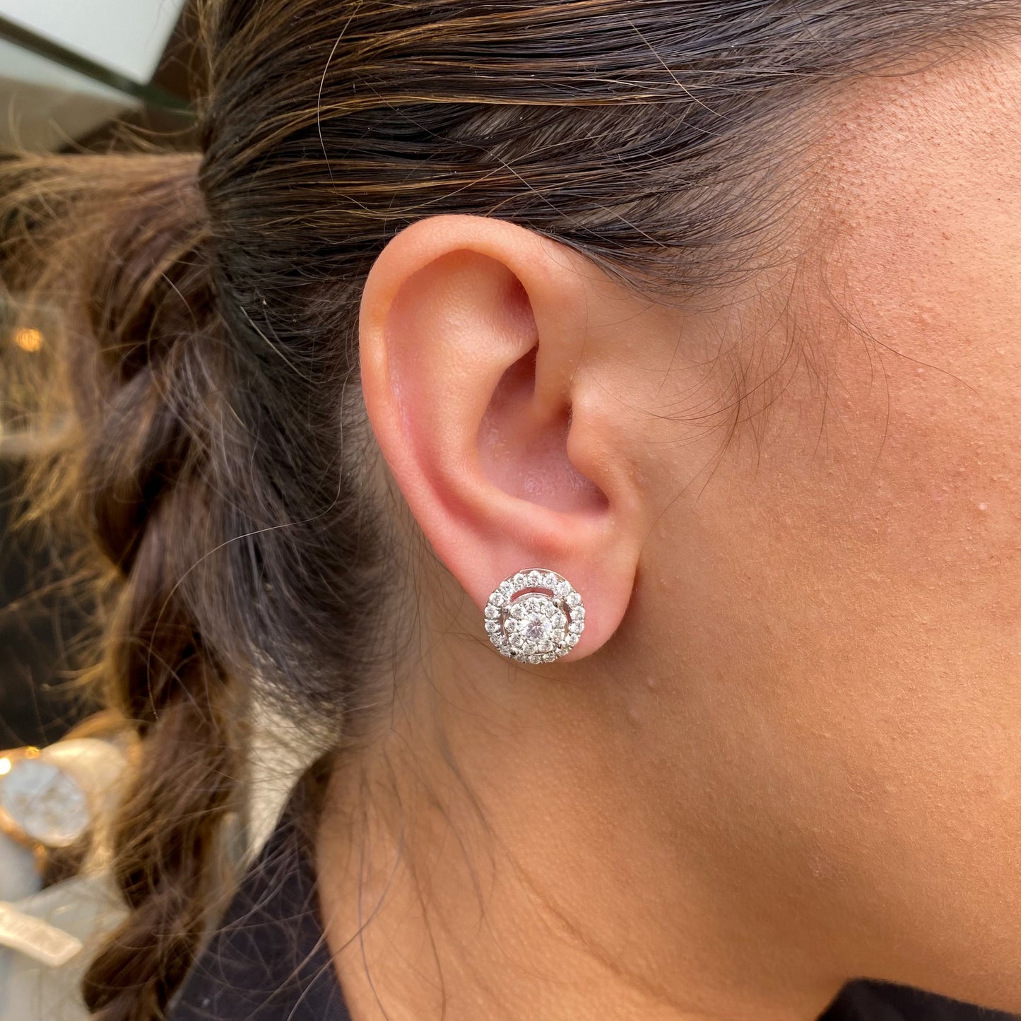 18ct White Gold Diamond Set Halo Earrings - 1.86ct