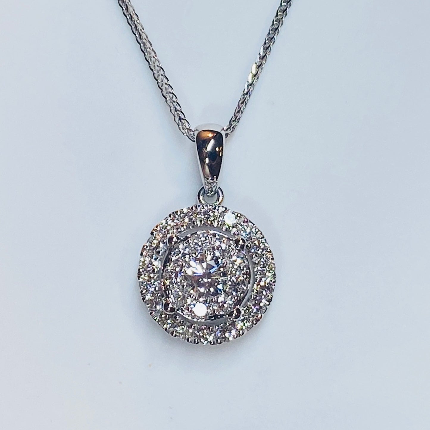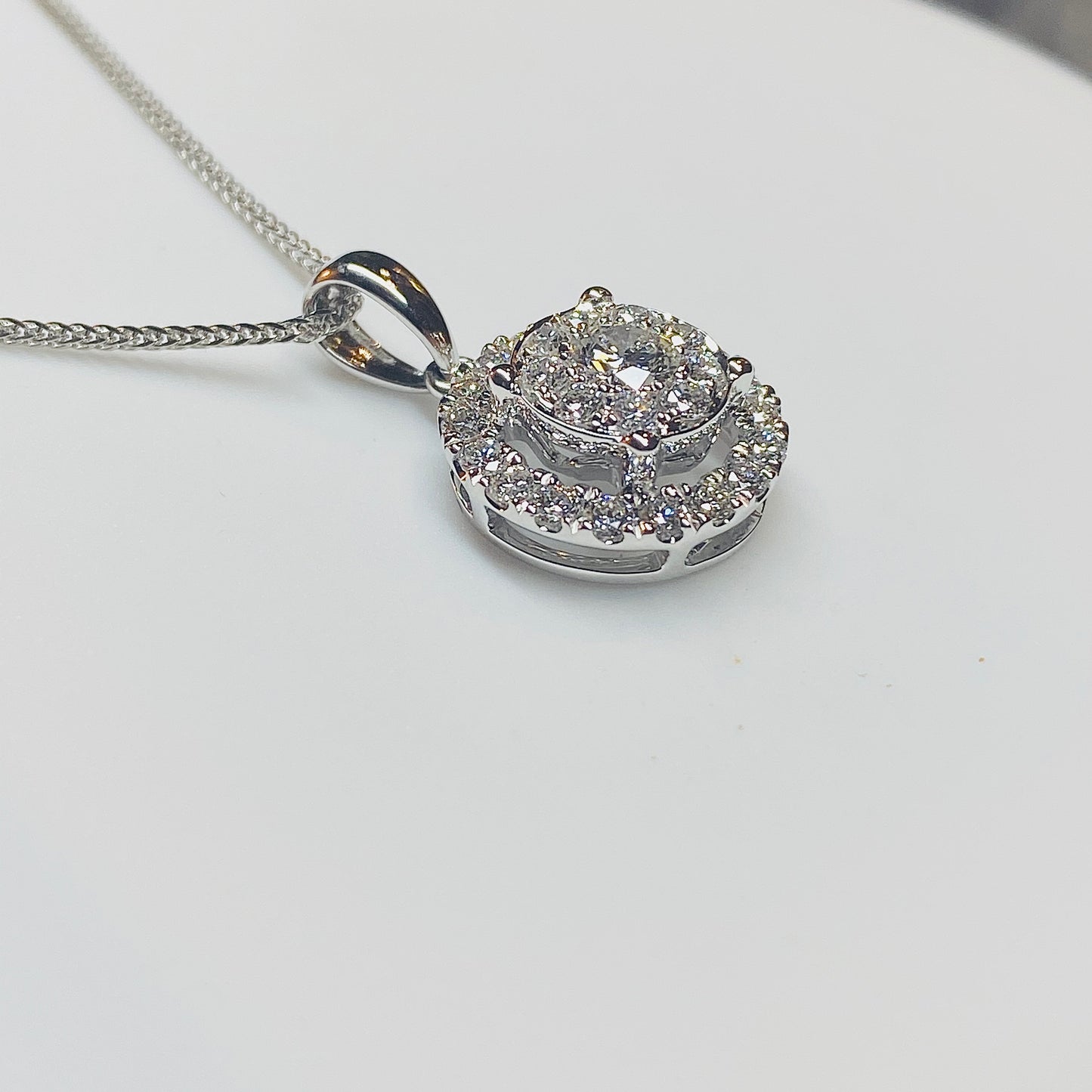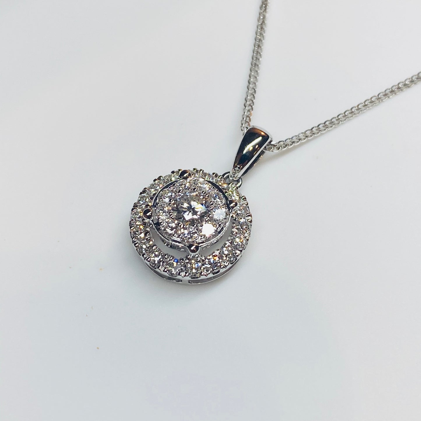 18ct White Gold Diamond Set Halo Pendant - 0.85ct