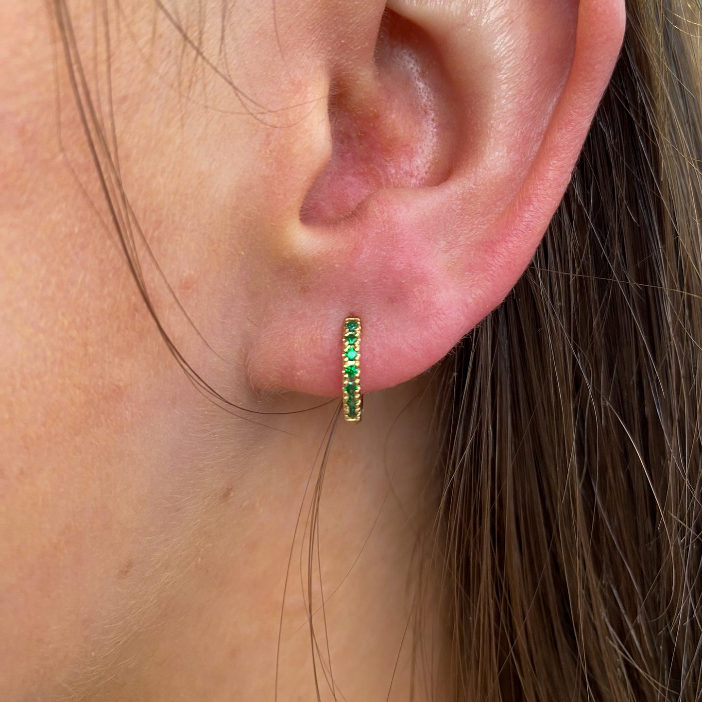 9ct Gold 9mm Huggie Hoop Earrings | Emerald Green CZ