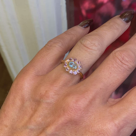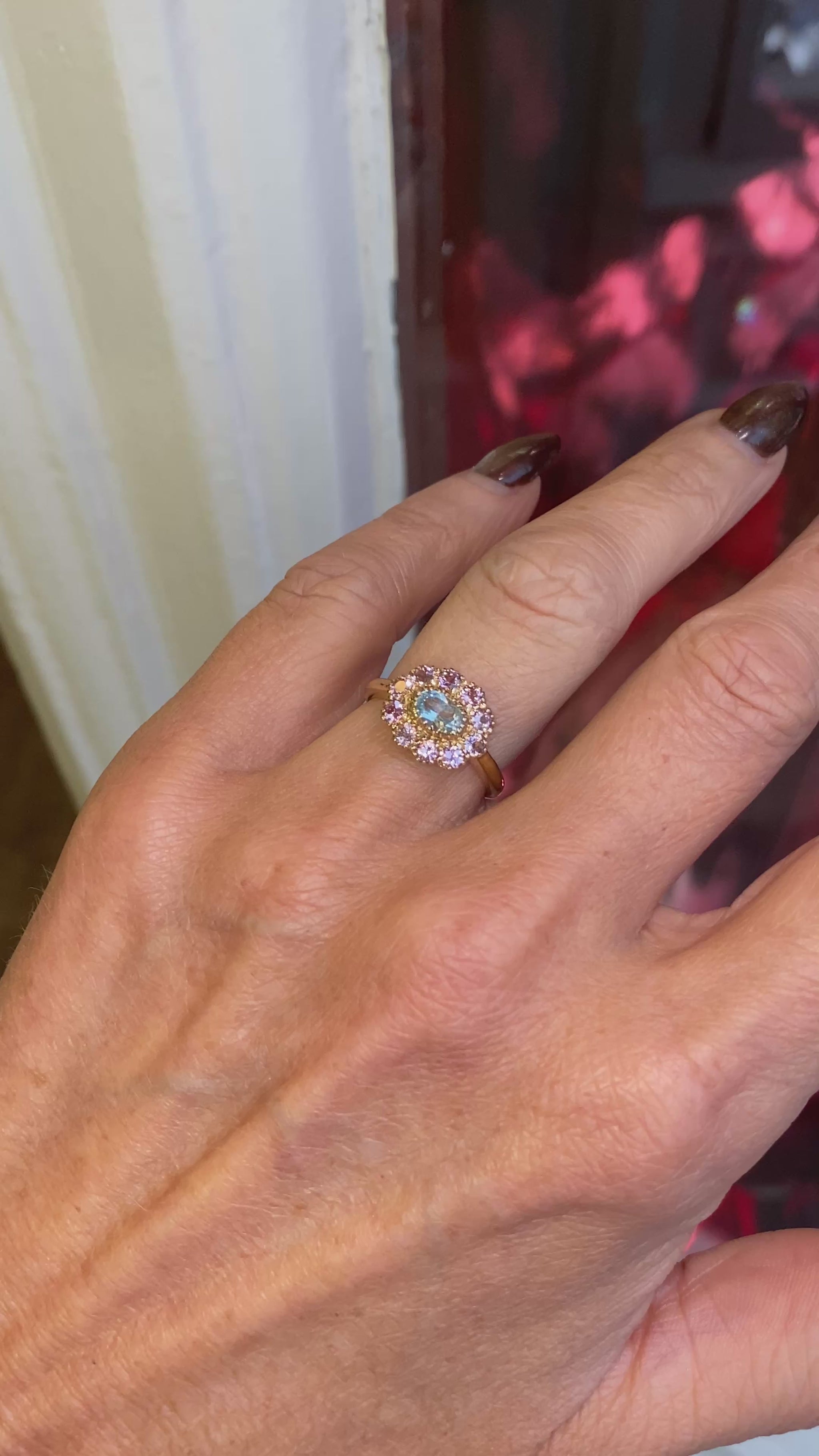 9ct Gold Aquamarine & Pink Tourmaline Ring