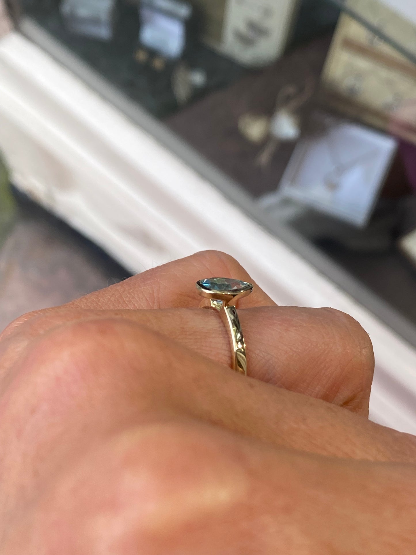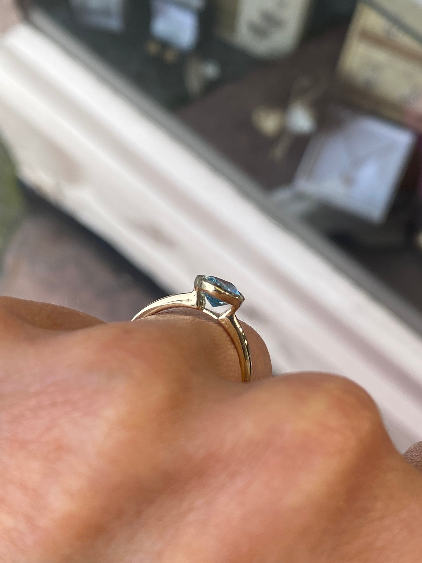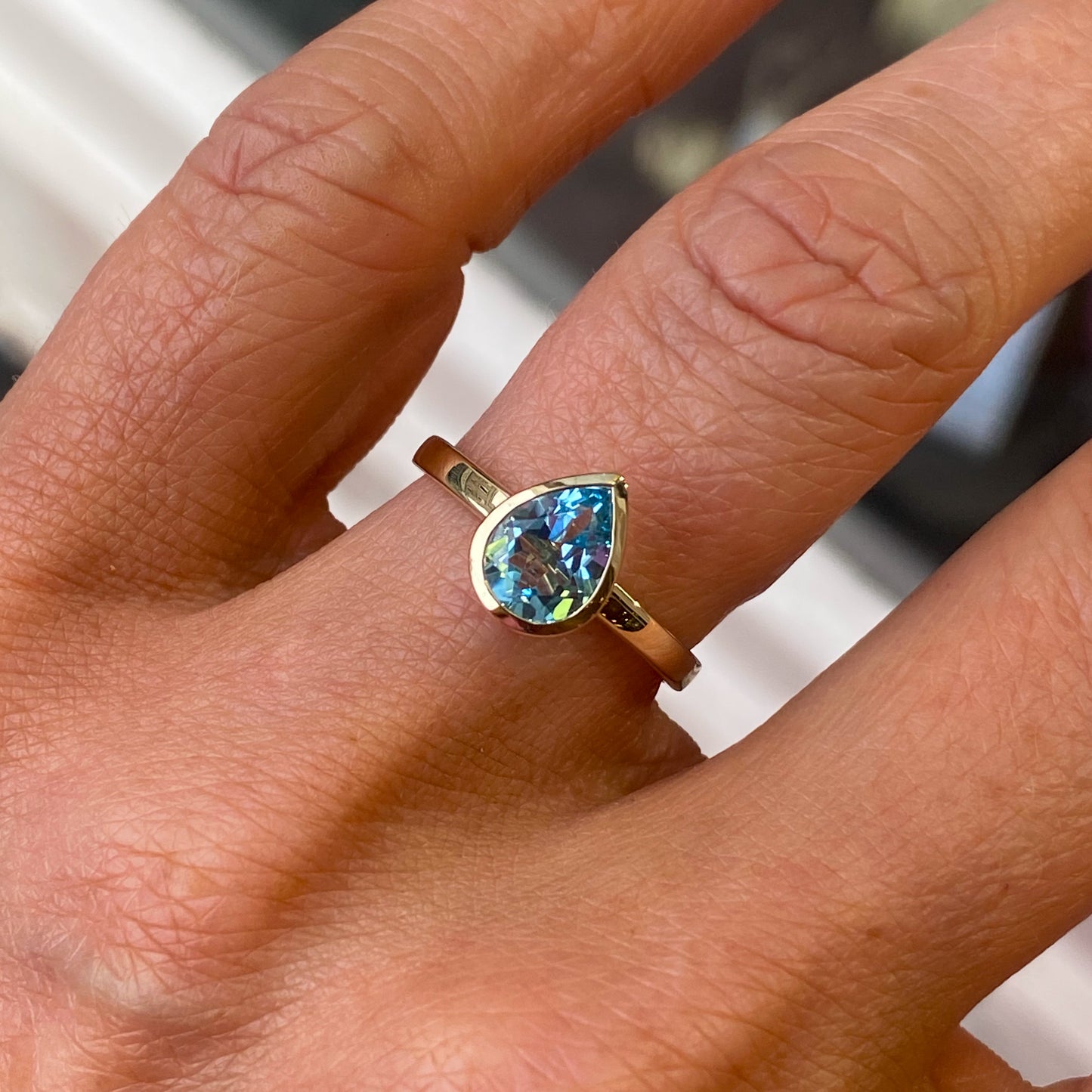 9ct Gold Bezel Pear Ring - Blue Topaz