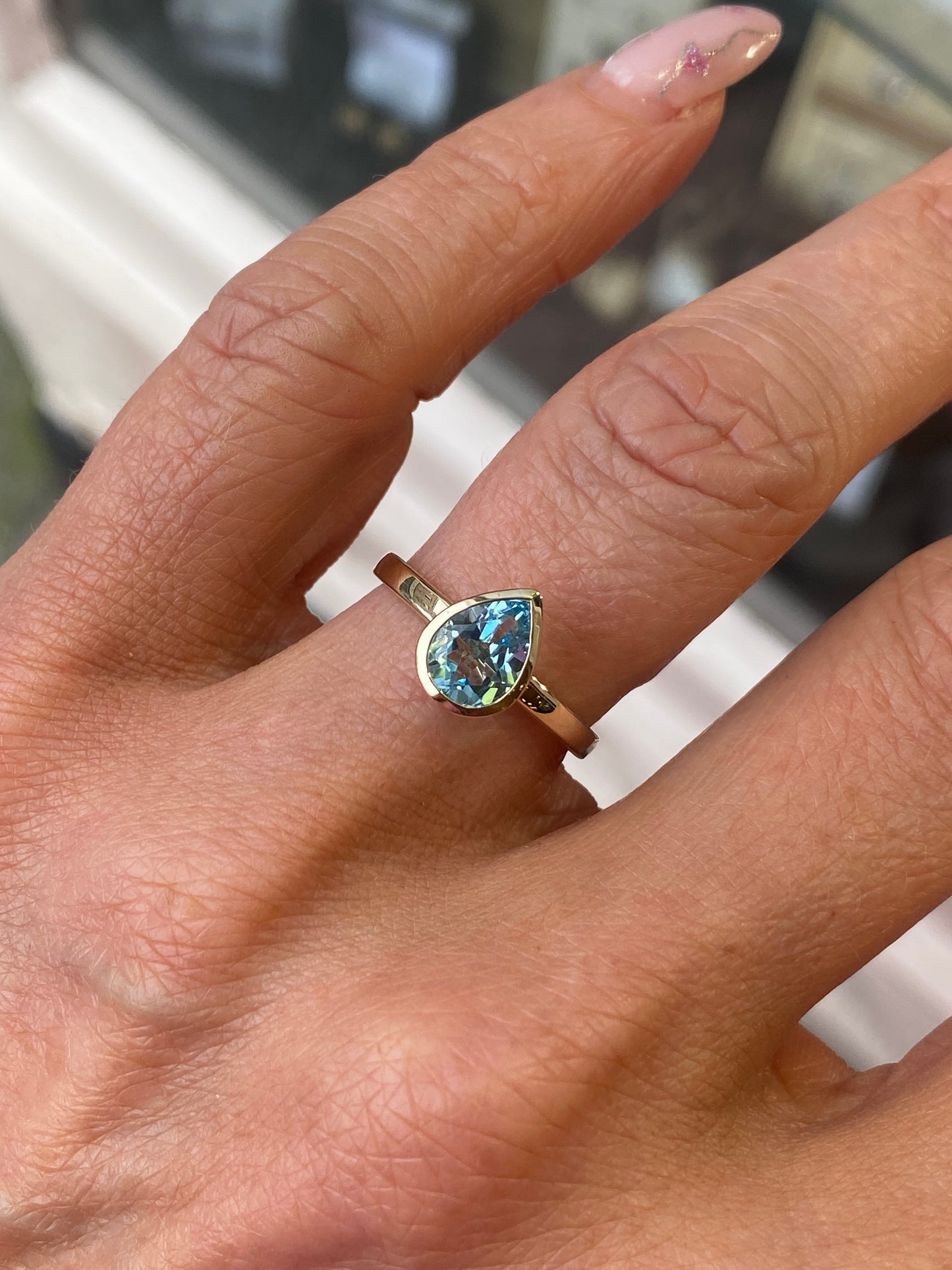 9ct Gold Bezel Pear Ring - Blue Topaz 8mm x 6mm