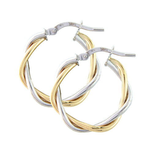9ct Gold Braided Two Tone Hoop Earrings | 15mm