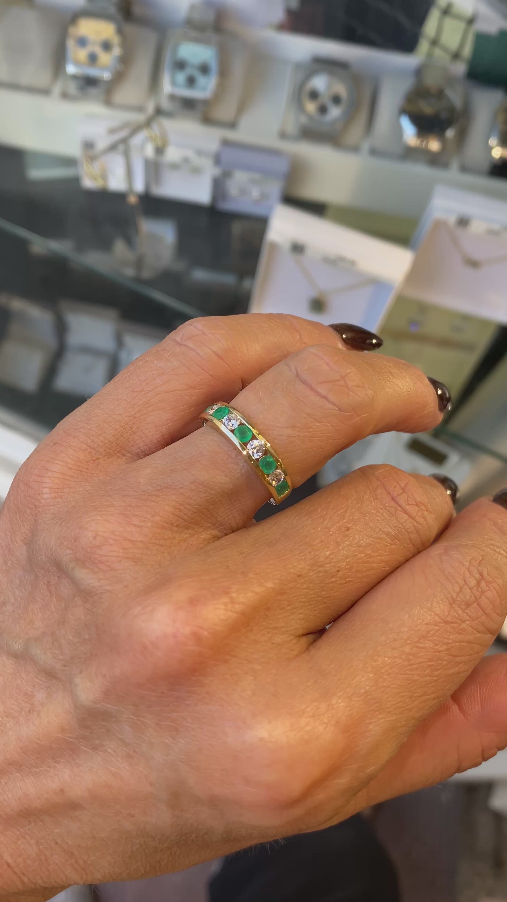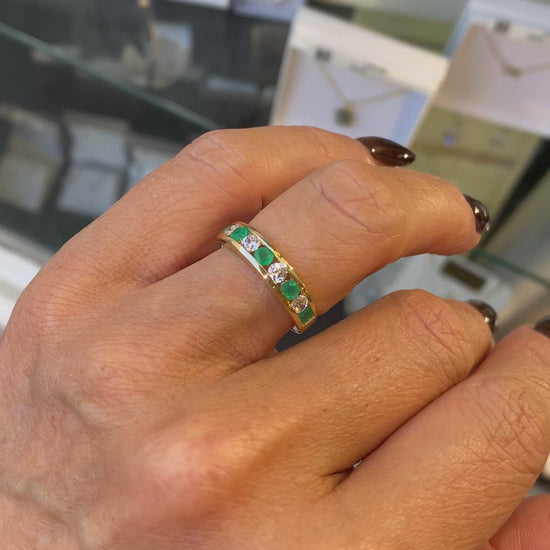 9ct Gold Channel Eternity Ring - Green Agate & CZ