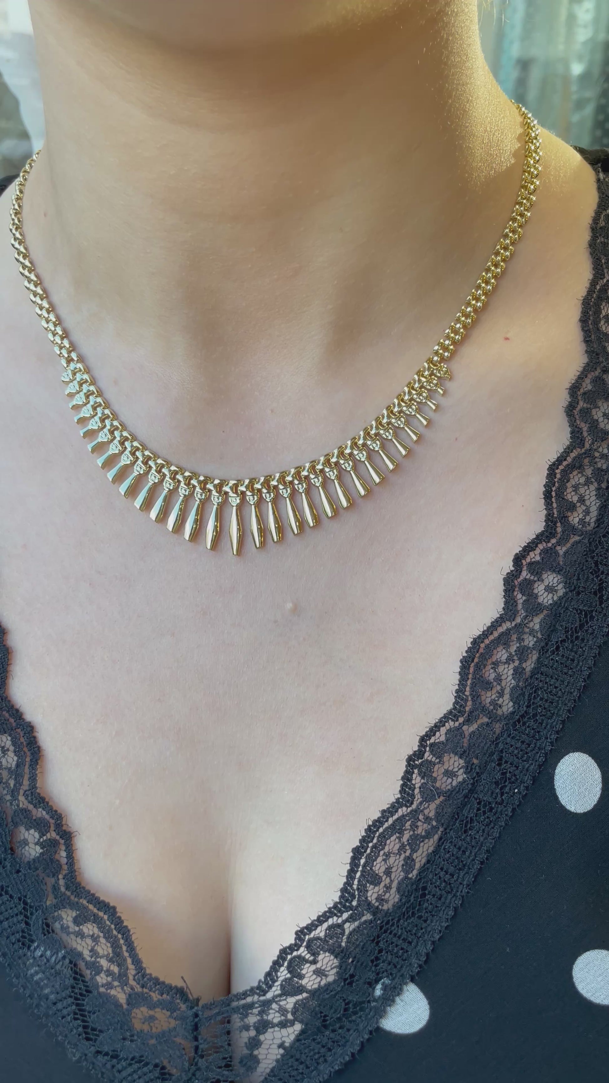 Glossy and gorgeous, this Cleopatra necklace makes a major statement.
