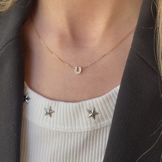 This beautiful necklace is made from 9ct yellow gold and has a pretty horseshoe set with cubic zirconia.