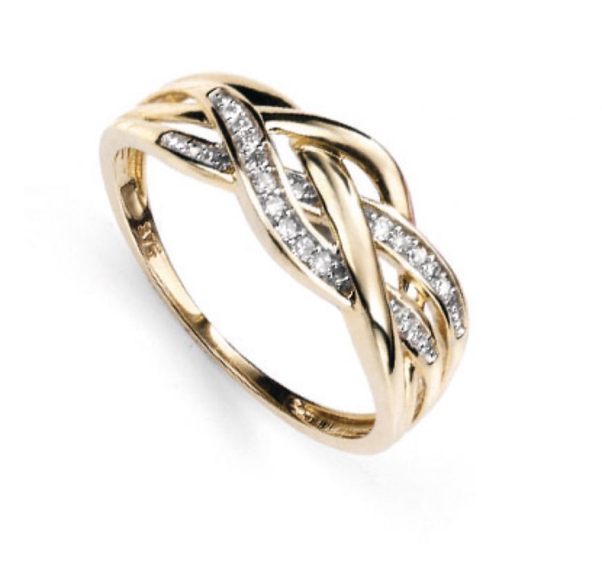 9ct Gold Diamond Plait Ring | 0.10ct of round brilliant cut diamonds