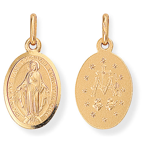This is a miniature Miraculous Medal made of 9ct yellow gold.