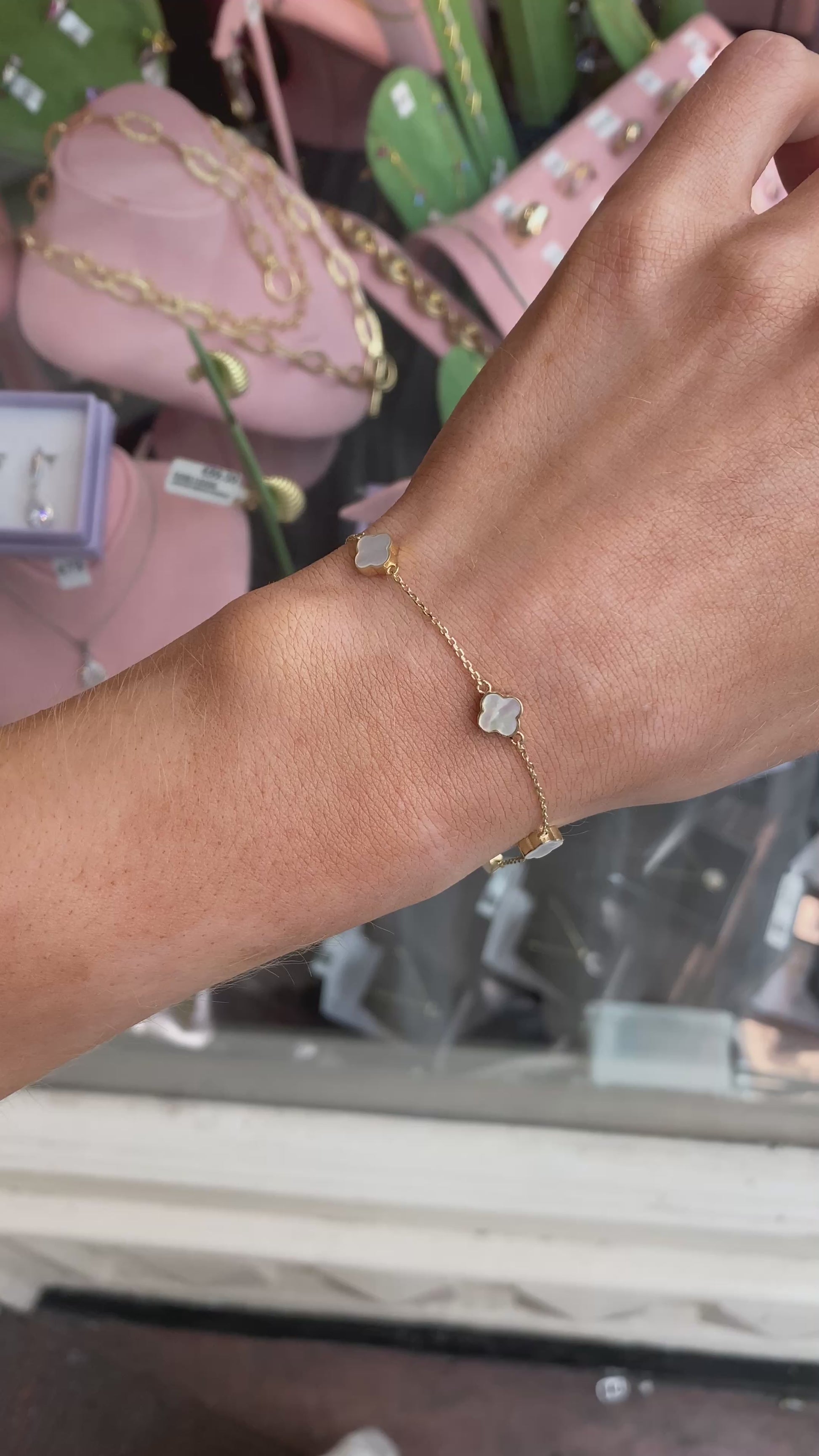 9ct Gold Mother of Pearl Quatrefoil Bracelet | 7mm