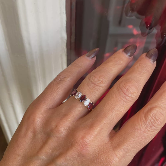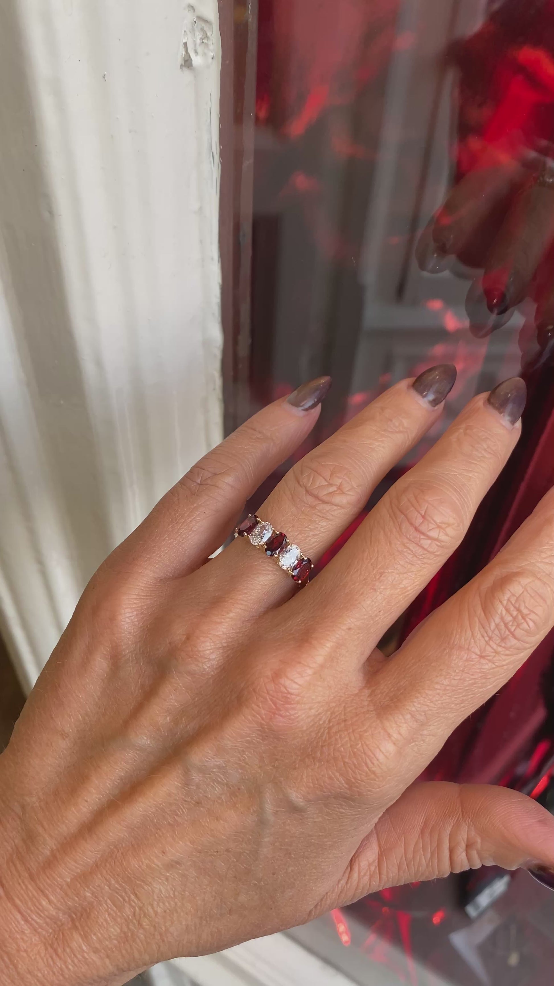 9ct Gold Oval Five Stone Eternity Ring - Garnet & CZ
