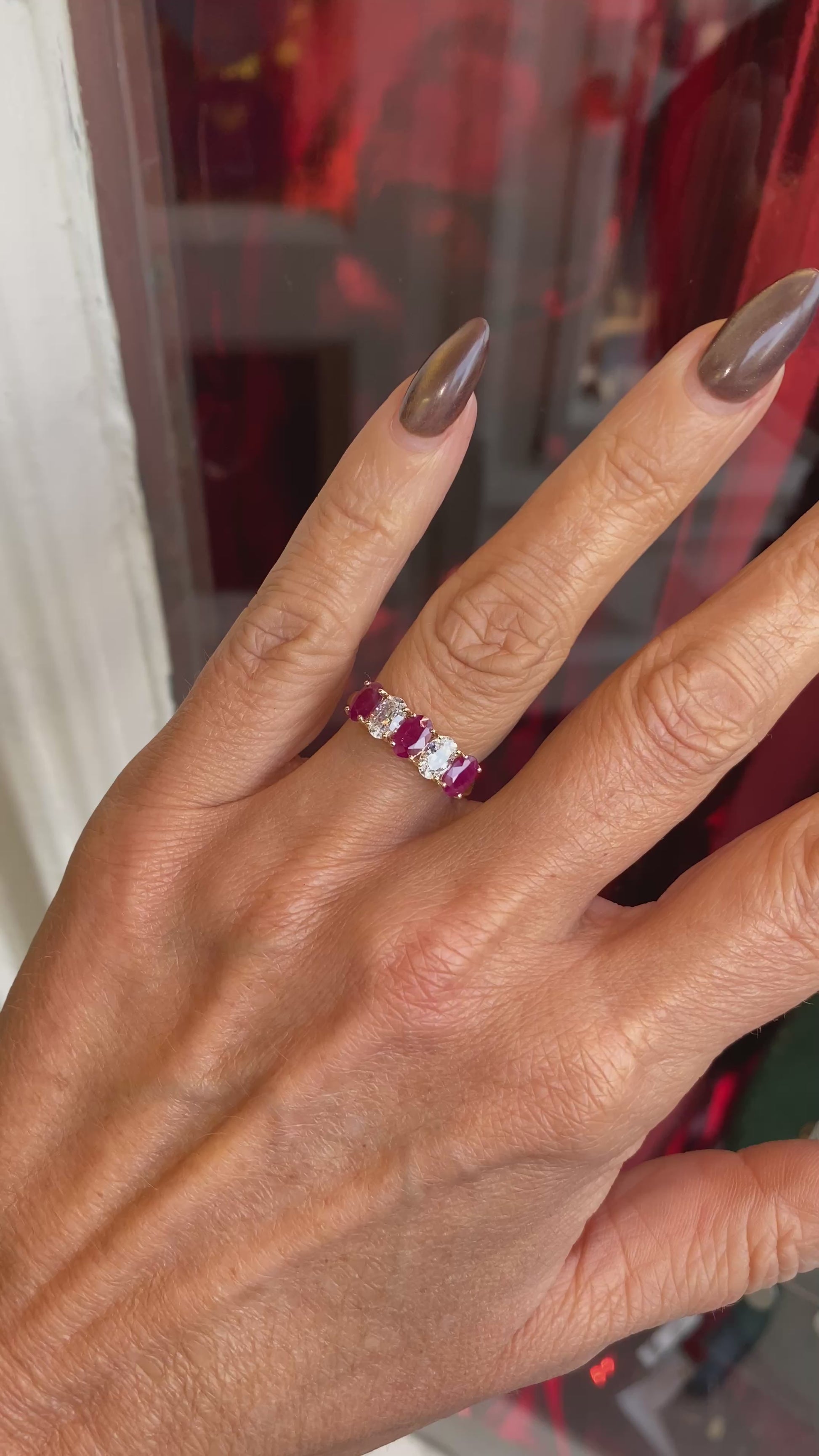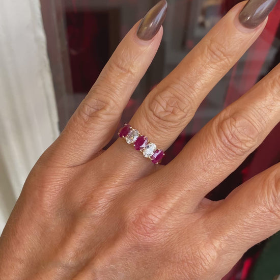 9ct Gold Oval Five Stone Eternity Ring - Ruby & CZ