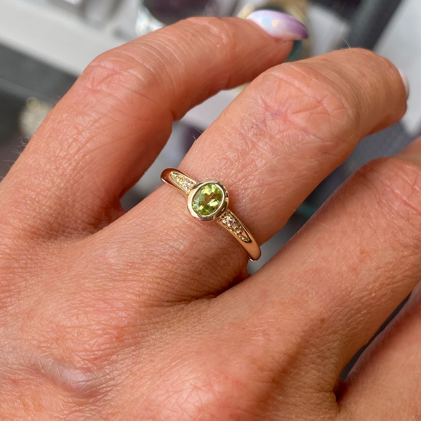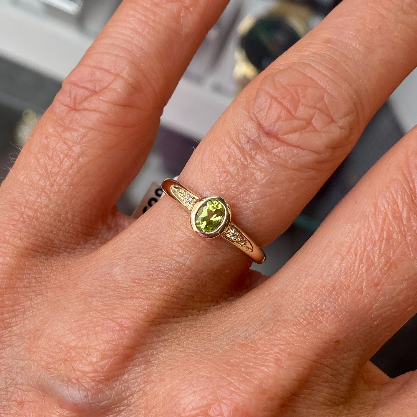 9ct Gold Oval Solitaire Ring - Peridot & White Topaz