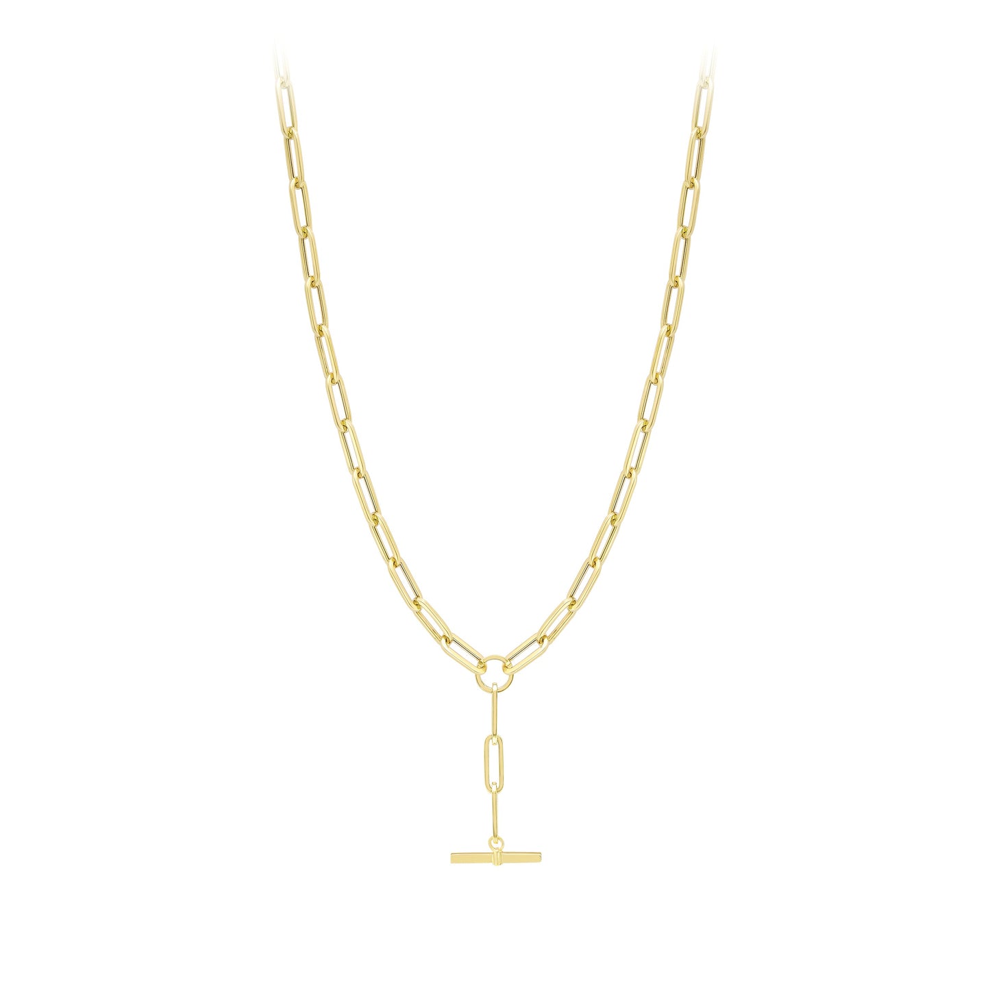 This 9ct yellow gold paper link chain necklace has a t-bar lariat.  This is an excellent choice that you can wear at any time.