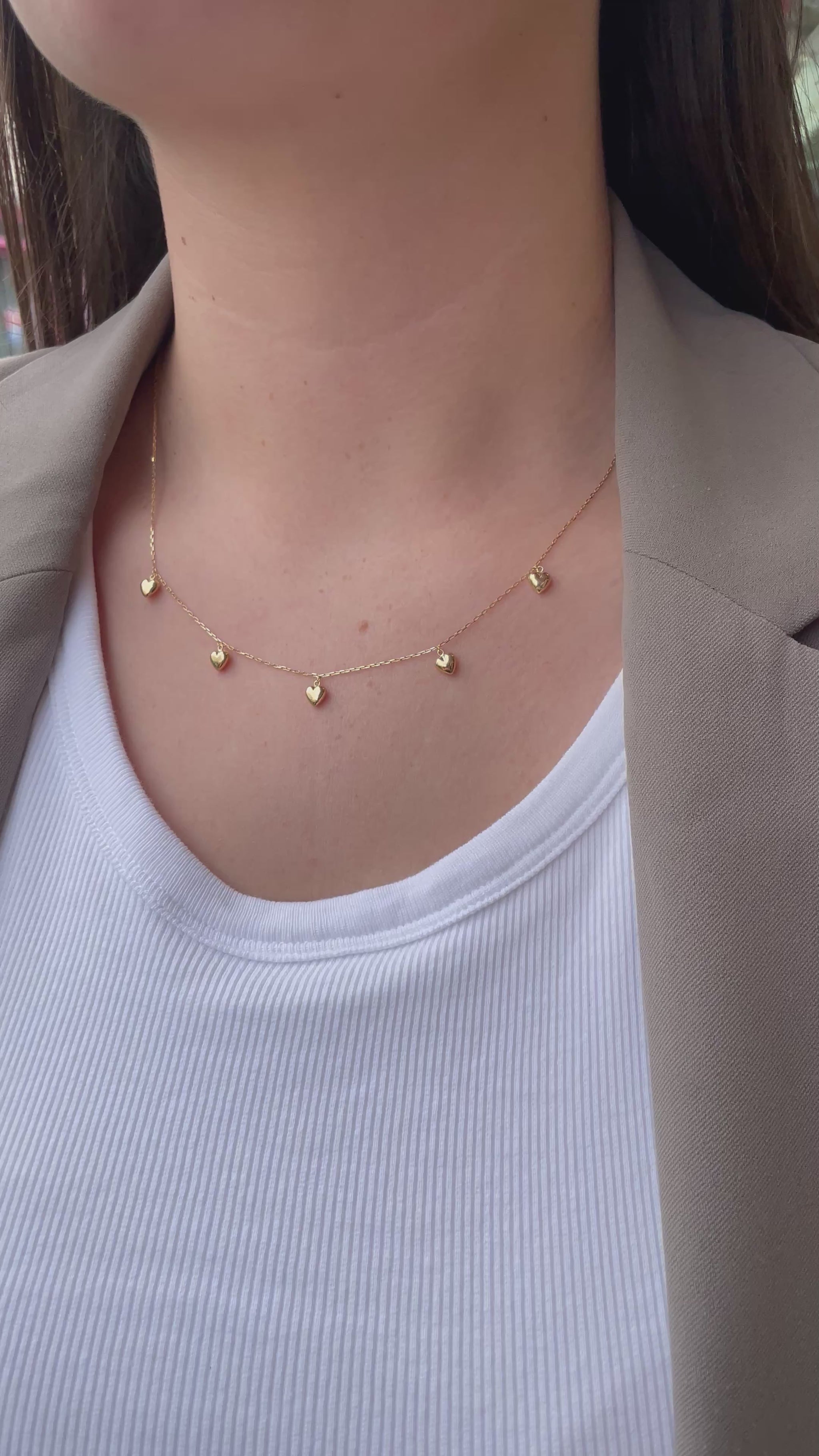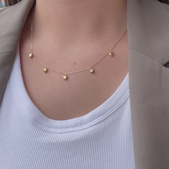 9ct Gold Puffed Five Hearts Fringe Necklace