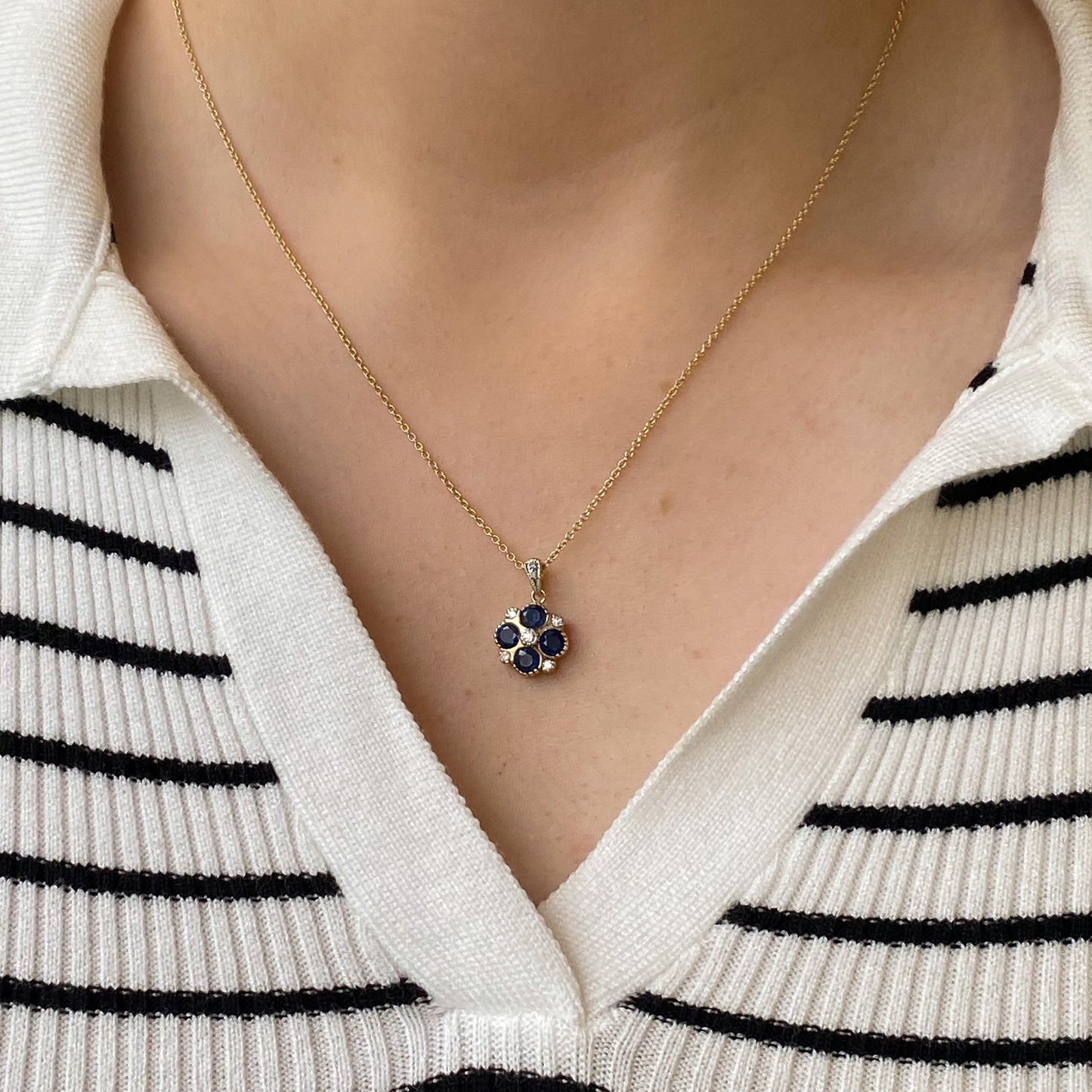 9ct Gold Sapphire & Diamond Quatrefoil Necklace