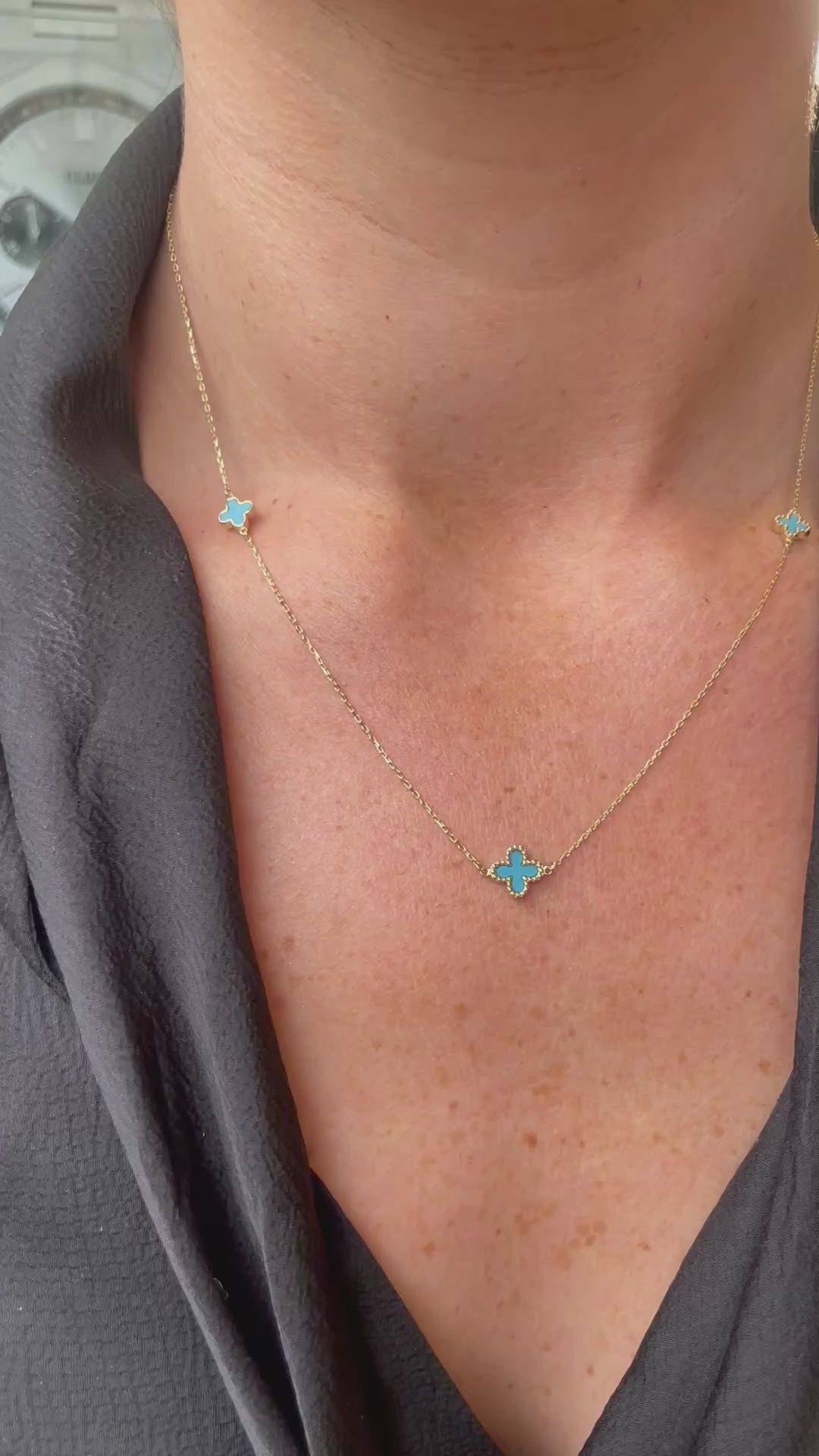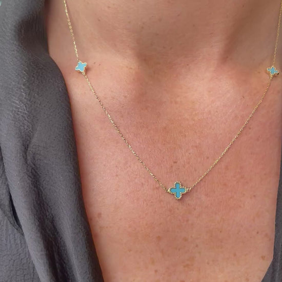 9ct Gold Turquoise Quatrefoil Necklace